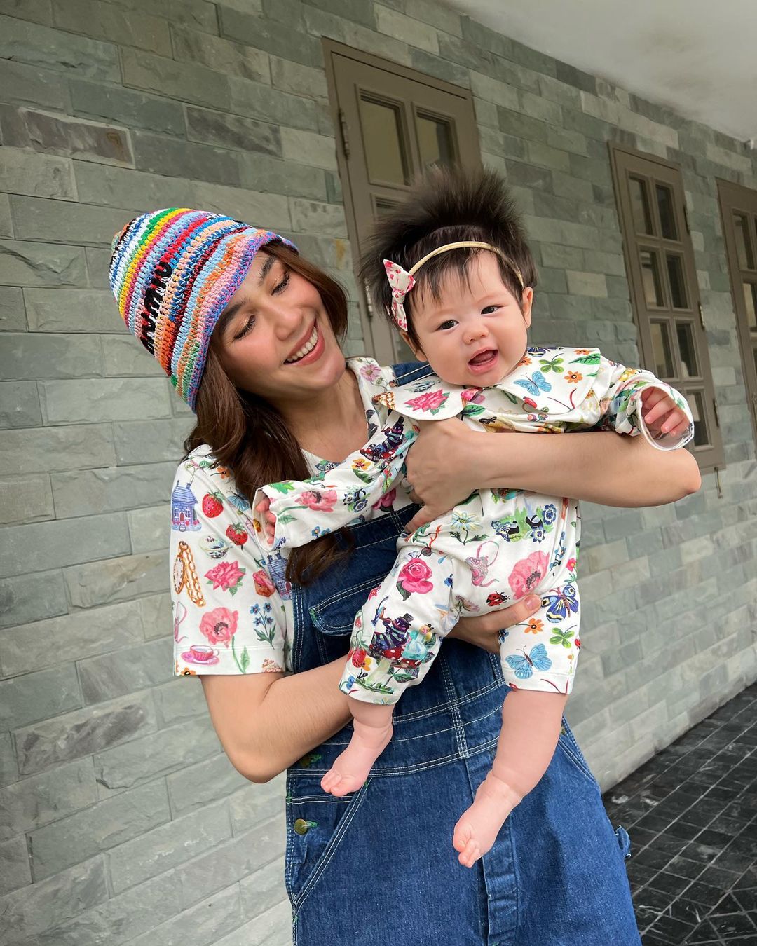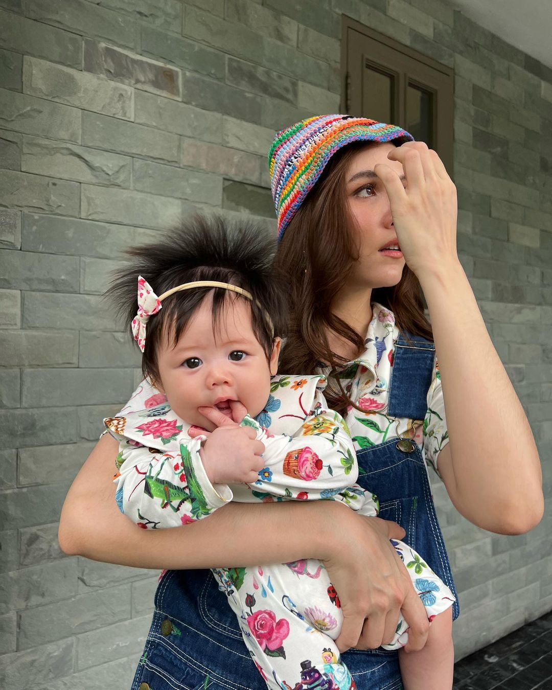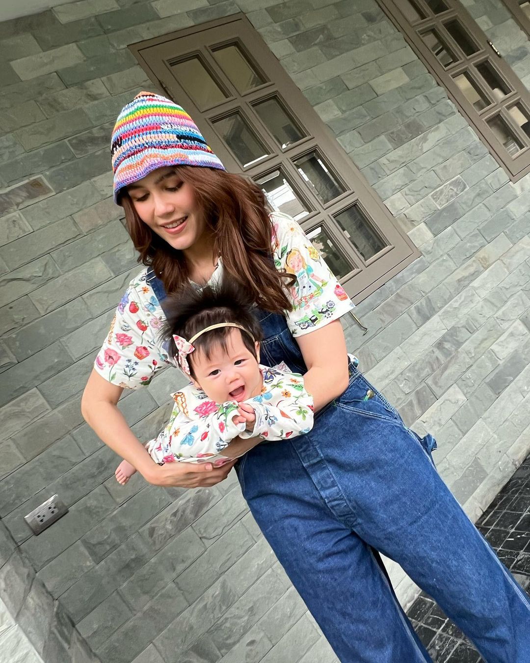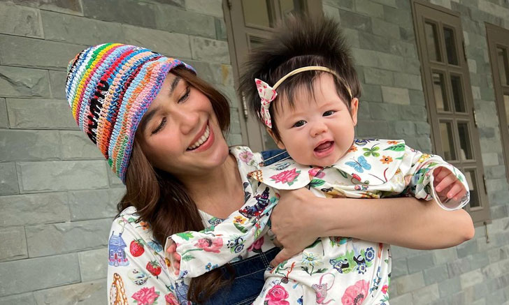 "แม่ชม" ถ่ายรูปคู่ "น้องแอบิเกล" แม่ลูกโพสท่าสดใสใส่ชุดลายดอก