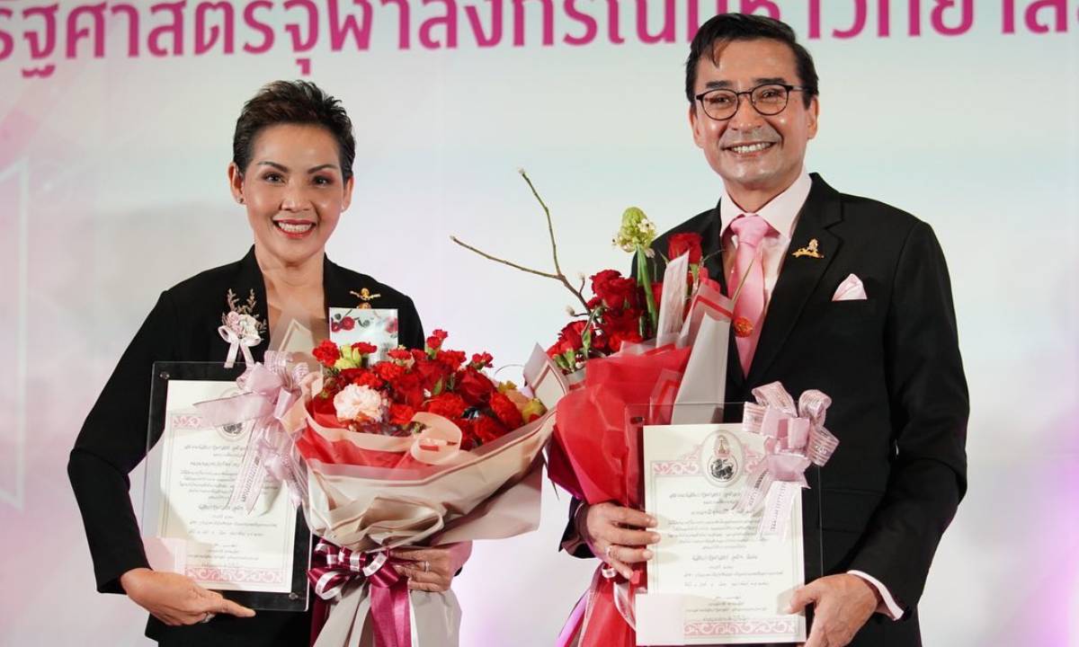 ปรบมือรัวๆ "ม.ล.ขวัญทิพย์ เทวกุล - นีโน่ เมทนี" รับรางวัลเกียรติคุณ "ศิษย์เก่าดีเด่น" จากจุฬาฯ