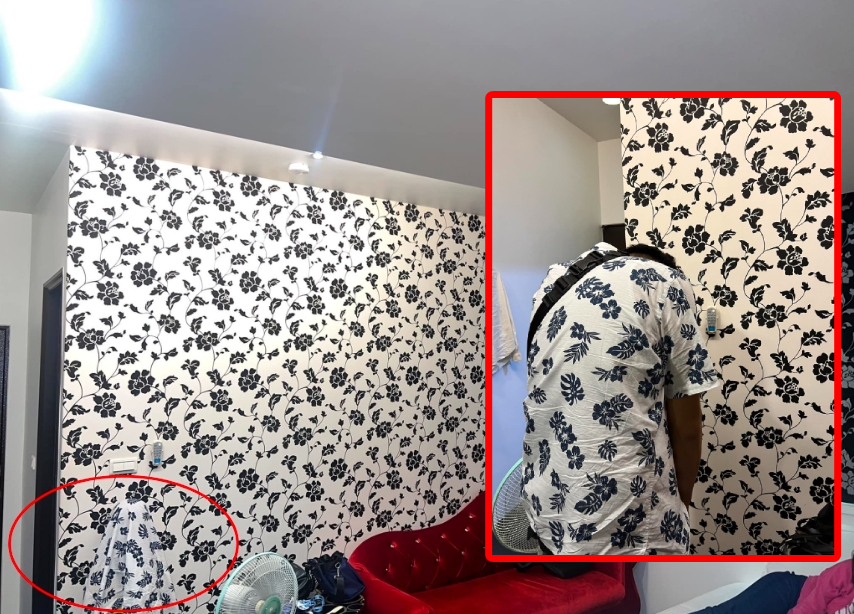 สามีฉันอยู่ในรูป! ครอบครัวพักโฮมสเตย์ เจอลายผนังเหมือนเสื้อผัว เป๊ะจนเนียนไปกับกำแพง