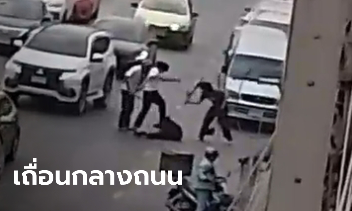 เถื่อนจัด วัยรุ่นควงมีดยาวไล่ฟัน ปล้ำกันกลางถนน เปิดภาพนาทีระทึกสาวนั่งในร้านดีๆ เกือบโดนลูกหลง