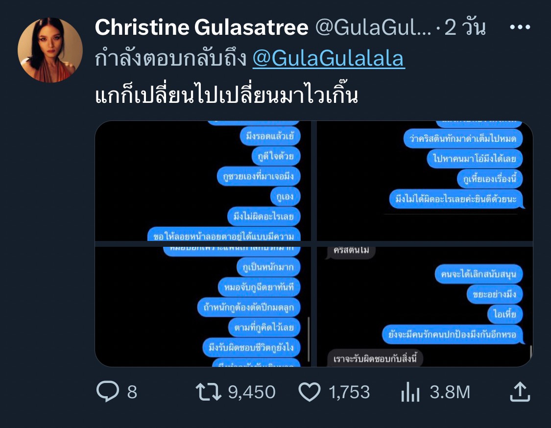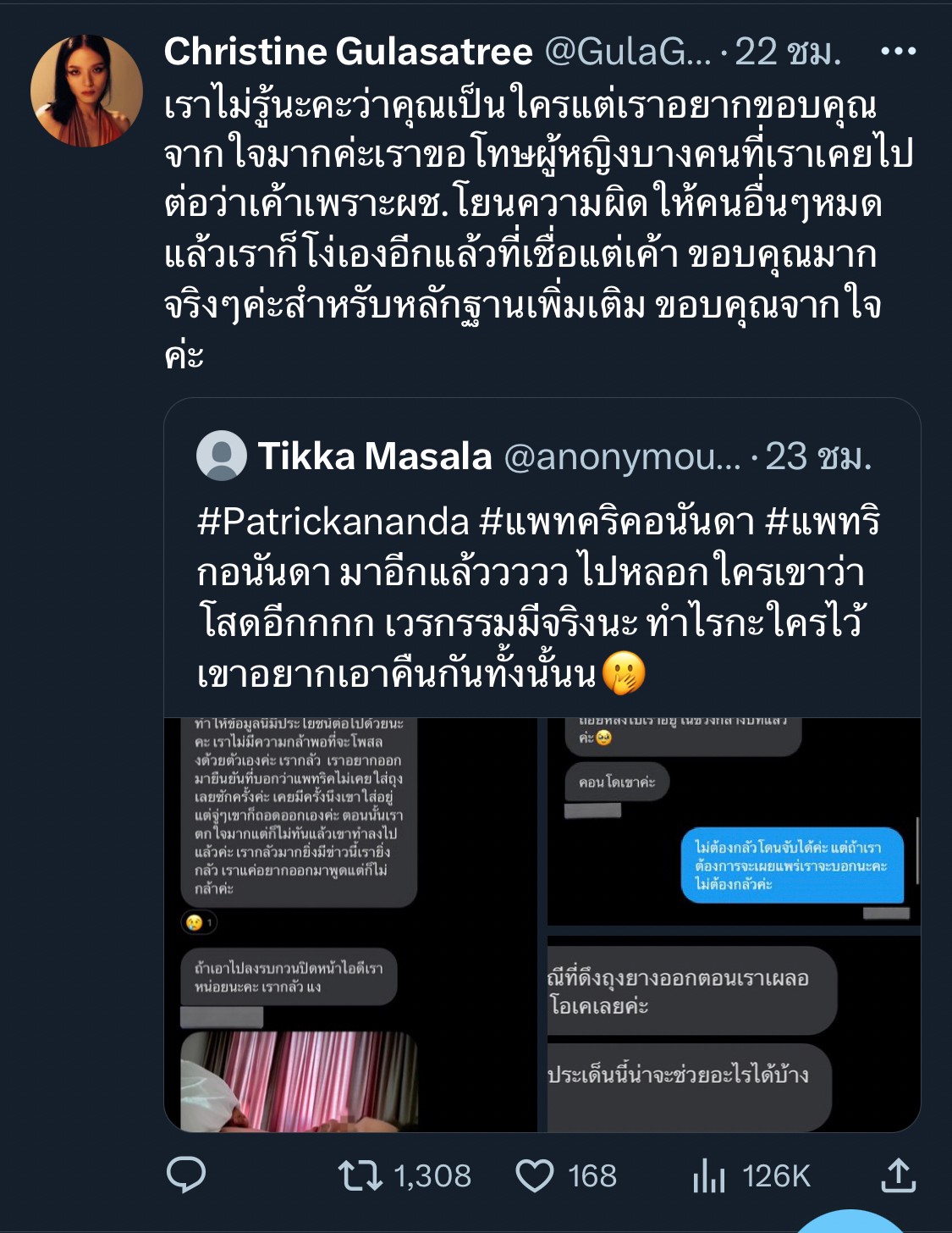 "คริสติน กุลสตรี" งัดหลักฐานแฉรัวๆ ท้า "แพทริคอนันดา" เจอโหนกระแสคริสติน กุลสตรี เดือดมาก งัดหลักฐานแฉรัวๆ ท้า แพทริคอนันดา เจอโหนกระแส
