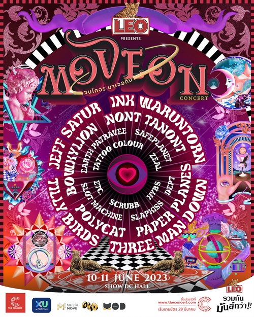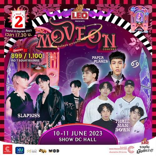 นี่คือคำทำนายจาก Muzik Move และ Monday On December ผู้ร่วมกันรังสรรค์ความบันเทิงแบบสุดปังในครั้งนี้ เตรียมพบกับกลุ่มศิลปินไพ่เด็ด 18 ศิลปิน ต่างค่าย ต่างสไตล์ ที่โคจรมาพบกันใน “LEO presents Move On จนโคจรมาเจอกัน คอนเสิร์ต” คอนเสิร์ตที่ให้แฟนเพลง Pick a show เลือกดูโชว์จากกลุ่มศิลปินที่ชื่นชอบ โดยมีทั้งหมด 6 กลุ่ม 6 รอบ ซึ่งแต่ละกลุ่มจะโชว์เพียงรอบเดียวเท่านั้น! หลังจากขายบัตรได้ไม่นาน ในช่วงปลายเมษายน บัตรบางรอบได้ Sold Out ไปเรียบร้อยแล้ว และบางรอบก็เหลือไม่มากนัก ใครที่ลังเลอยู่ ยังมีเวลารีบจองให้ทัน เลือกศิลปินที่ชอบกับรอบที่ใช่ แล้วมาเจอกัน10 - 11 มิถุนายน 2566 ที่ SHOW DC HALL ชั้น 6 ศูนย์การค้า SHOW DC