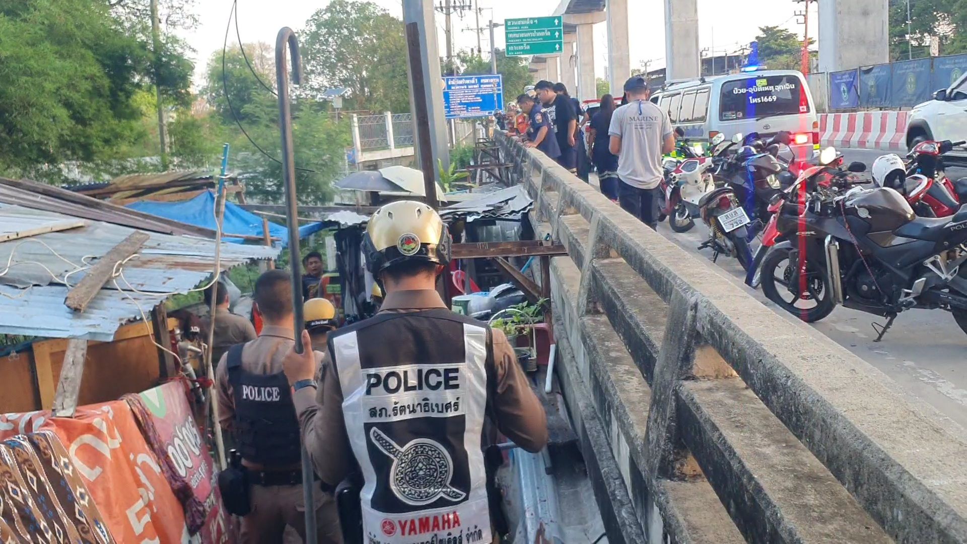 นายศุภชัย อายุ 35 ปี กล่าวว่า ได้รับแจ้งว่ามีผู้ถูกแทงเสียชีวิต ได้มาตรวจสอบที่เกิดเหตุ พบว่าผู้ถูกแทงเสียชีวิตแล้ว โดนแทงตั้งแต่ใต้สะพานแล้วมาเสียชีวิตด้านบน ผู้ก่อเหตุโดนจับตัวไว้ได้เป็นผู้ป่วยจิตถูกแทงบริเวณลำคอและหน้าอก หัวไหล่