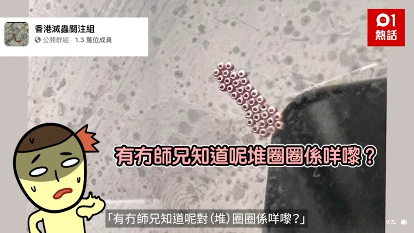 สิ่งที่น่ากลัวเมื่อพบไข่แมลงคือ ส่วนใหญ่เรามักไม่รู้จักสายพันธุ์ของมัน เช่นเดียวกับชาวเน็ตคนหนึ่ง เมื่อ 2-3 วันก่อนโพสต์ลงในกลุ่มเฟซบุ๊ก 香港滅蟲關注組 เล่าว่าพบ "เม็ด" รูปทรงวงกลมประหลาด เป็นสีแดงอ่อน มีจุดสีดำตรงกลาง คล้ายยางนับเชื่อมต่อกันอย่างใกล้ชิด รวมแล้วมากถึง 35 วง พบในห้องครัวของบ้าน แต่เขาไม่รู้ว่ามันคืออะไรกันแน่