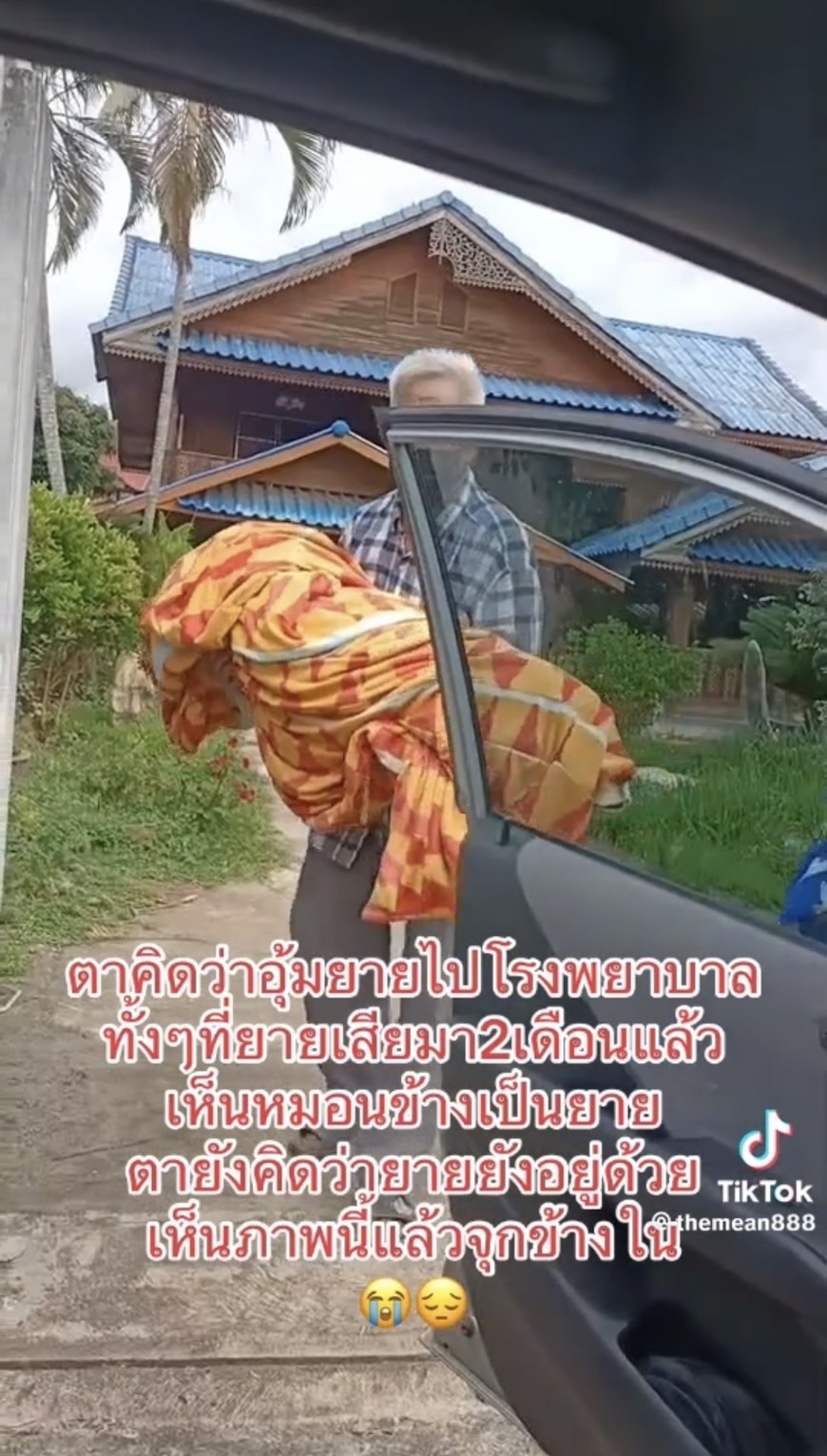 เห็นแล้วน้ำตาซึม ตาอุ้มหมอนข้างไป รพ. ที่แท้คิดว่ายายยังอยู่ ทั้งที่เสียมา 2 เดือนคลิปไวรัลเรียกน้ำตา คุณตาอุ้มหมอนข้างขึ้นรถเตรียมพาไป รพ. เห็นแล้วจุกในอก ที่จริงคุณยายเสียไป 2 เดือนแล้ว