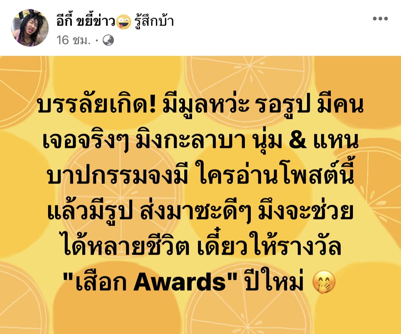 กลายเป็นประเด็นให้ถูกจับตาอีกครั้ง เมื่อเพจ อีกี้ ขยี้ข่าว ได้โพสต์ข้อความสุดแซ่บ ระบุว่า “บรรลัยเกิด! มีมูลหว่ะ รอรูป มีคนเจอจริงๆ มิงกะลาบา นุ่ม & แหน บาปกรรมจงมี ใครอ่านโพสต์นี้แล้วมีรูป ส่งมาซะดีๆ มึงจะช่วยได้หลายชีวิต เดี๋ยวให้รางวัล “เสือก Award” ปีใหม่”