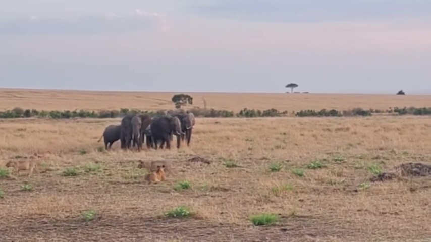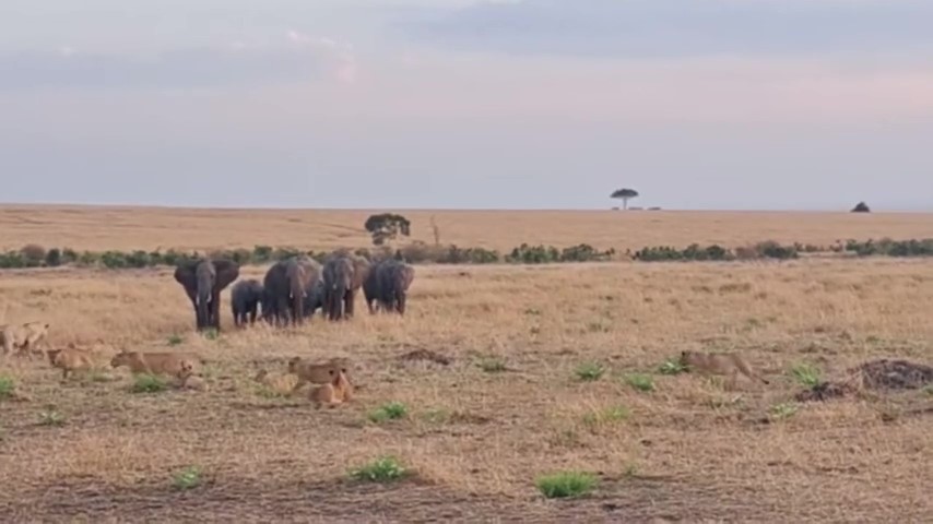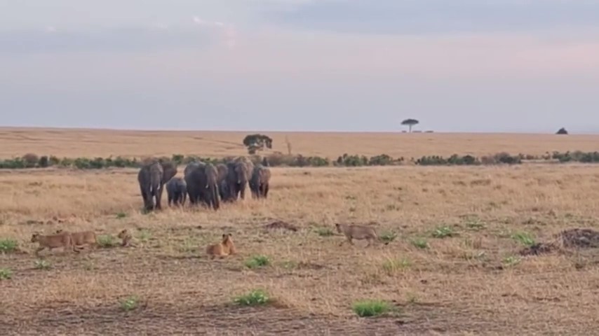 อัลบั้มภาพทั้งหมด คลิปหาดูยาก ฝูงช้างย่ำเข้าหาแก๊งสิงโต หวั่นศึกทรงพลัง 2 สายพันธุ์ อึ้ง เปิดทางแบบสันติ
