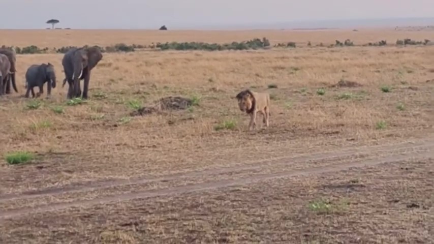 คลิปหาดูยาก ฝูงช้างย่ำเข้าหาแก๊งสิงโต หวั่นศึกทรงพลัง 2 สายพันธุ์ อึ้ง เปิดทางแบบสันติ