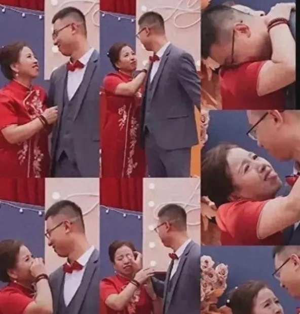 เจ้าบ่าวจับมือเจ้าสาวไว้ข้างหนึ่งและมือแม่อีกข้างหนึ่ง พร้อมทั้งปาดน้ำตาให้และกล่าวให้กำลังใจอยู่ตลอดเวลา การกระทำที่ใกล้ชิดมากเกินไปของแม่กับลูกชาย ทำให้แม้แต่พ่อแม่ของเจ้าสาวยังมองแรง
