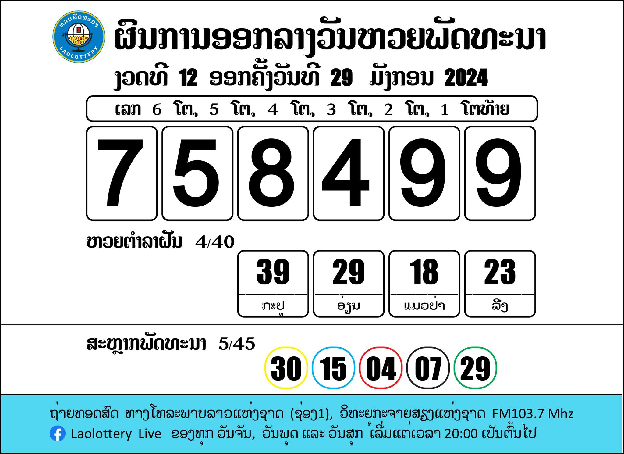 ลุ้นสด หวยลาววันนี้ 29/1/67 ถ่ายทอดสดหวยลาว หวยลาวล่าสุด หวยลาวพัฒนา 29 ม.ค. 67 หวยลาวย้อนหลัง หวยลาว 6 ตัว วันนี้ออกอะไร งวด 29 มกราคม 2567 Laolottery หวยลาว ออกรางวัลทุก วันจันทร์ วันพุธ และ วันศุกร์