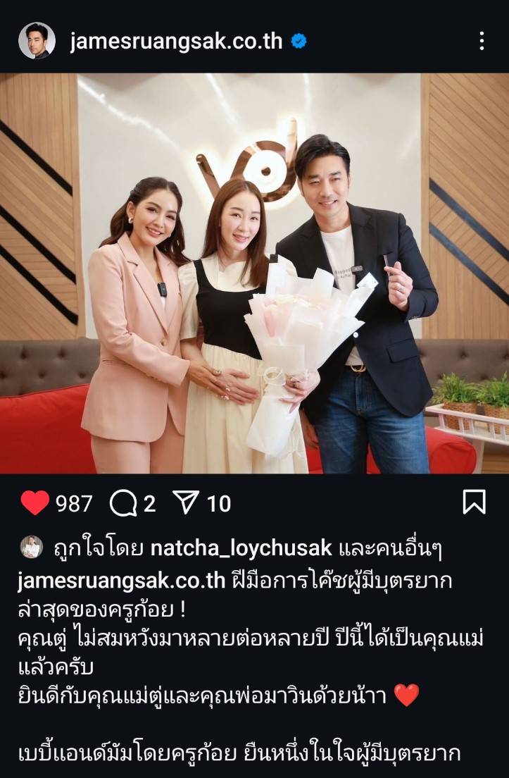 "ทำอิ๊กซี่มาหลายรอบมาก เป็นคนที่มีจำนวนไข่ค่อนข้างเยอะ แต่ว่าคุณภาพไม่ได้ ถึงขั้นหมดหวัง เคยคิดว่าจะหยุดจริงๆ ถ้ารอบนี้ไม่ได้ เผยคำพูดจาก เจมส์ เรืองศักดิ์ ทำให้คิดได้ เราพร้อมขนาดนี้ มันต้องได้สิ จึงตัดสินใจทักหา ครูก้อย-นัชชา ลอยชูศักดิ์ เบบี้แอนด์มัม คิดว่าต้องมีโค้ช โดยครูก้อยขอเวลา 2 เดือนแนะปรับโภชนาการ และเคล็ดลับการดูแลสุขภาพในเชิงลึก ก่อนเข้าสู่กระบวนการกระตุ้นไข่ในครั้งที่ 9 จนสำเร็จ"