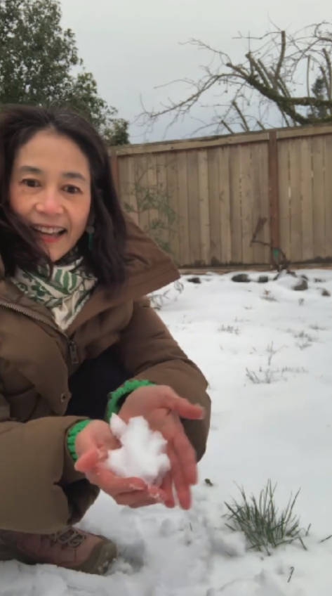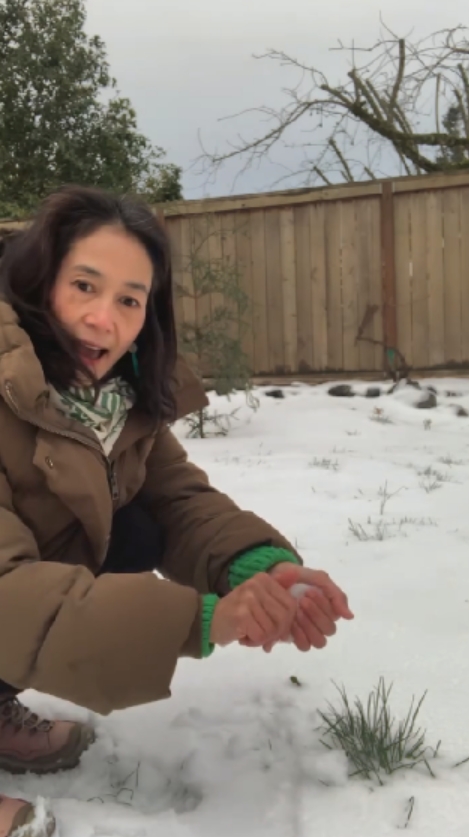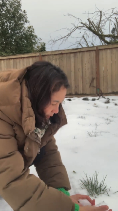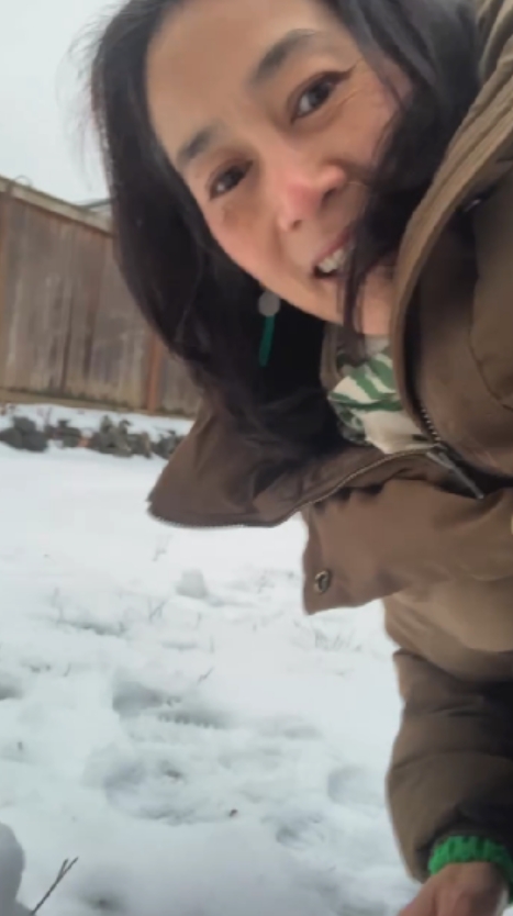 "อุ้ม สิริยากร" เผยภาพบ้านที่โอเรกอนปกคลุมด้วยหิมะ ปั้นบ้านอิกลูได้น่ารัก