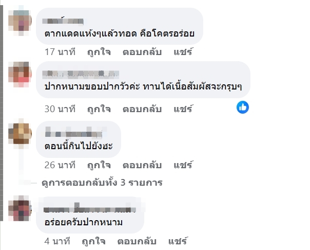 นอกจากคอมเมนต์ที่เข้ามาแซวว่าเหมือนฝันปลอมแล้ว ทุกคนต่างเข้ามาเฉลยตรงกันว่า สิ่งที่เห็นในรูปคือ "ปากหนาม" ซึ่งเป็นกระเพาะที่สี่ของวัว สามารถรับประทานได้ โดยมีเนื้อสัมผัสที่หนาและหยาบ และมีรสชาติที่หวานมัน ซึ่งหลายเสียงคอนเฟิร์มว่า "ของดีเลย" , "ตากแดดแห้งๆแล้วทอด คือโคตรอร่อย" , "ปากหนามขอบปากวัวค่ะ ทานได้เนื้อสัมผัสจะกรุบๆ" , "ซื้อต้มแซ่บเนื้อมาพ่อค้าให้แต่ไอ้พันนี้มา ไม่เคยกินเห็นละกินไม่ลง พอกินลงคำเดียวเท่านั้นแหละ ติดใจเลย"