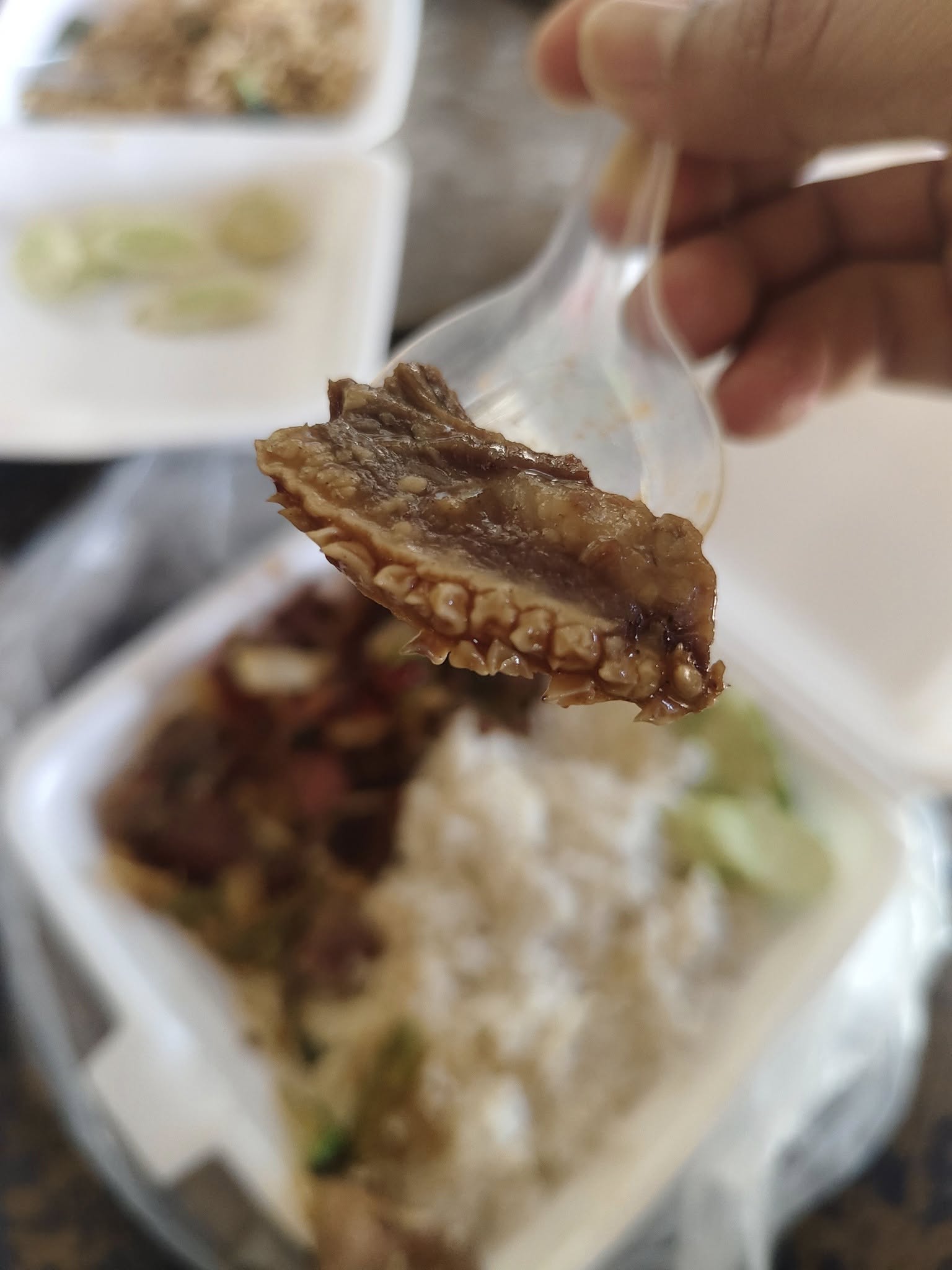 วันที่ 4 มีนาคม 2568 สมาชิกกลุ่มเฟซบุ๊ก พวกเราคือผู้บริโภค ได้โพสต์รูปภาพข้าวกล่องที่ซื้อมารับประทาน โดยเขาสั่งเป็นเมนูสั่งกระเพราะเนื้อเปื่อย แต่กลับพบว่ามีชิ้นเนื้อรูปร่างหน้าตาไม่คุ้นปะปนมาในกล่องด้วย จึงตัดสินใจแชร์ภาพเพื่อสอบถามผู้รู้ว่า สิ่งนี้สามารถทานได้หรือไม่ ระบุว่า "ส่วนใหนของวัวครับผมสั่งกระเพราะเนื้อเปื่อยละได้ชิ้นส่วนนี้มาแระมาน 4-5 ชิ้น มันกินได้ใช่ไหมคับ"