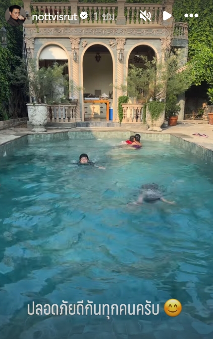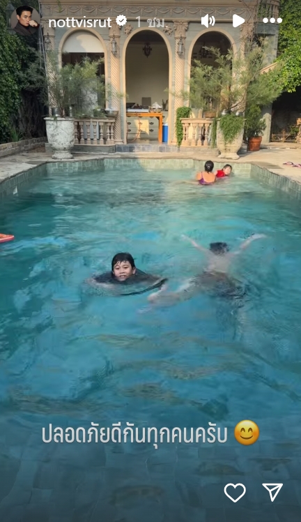 แฟนคลับห่วงใย "ชมพู่" พักบนคอนโดสูง ล่าสุด "พ่อน็อต" ลงภาพให้เห็นแล้วน็อต วิศรุต ลงภาพครอบครัวลูกๆ เล่นน้ำในสระ บอกปลอดภัยกันทุกคน หลังแฟนคลับเป็นห่วงอยู่คอนโดสูง
