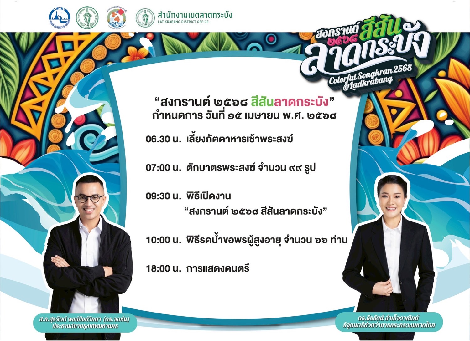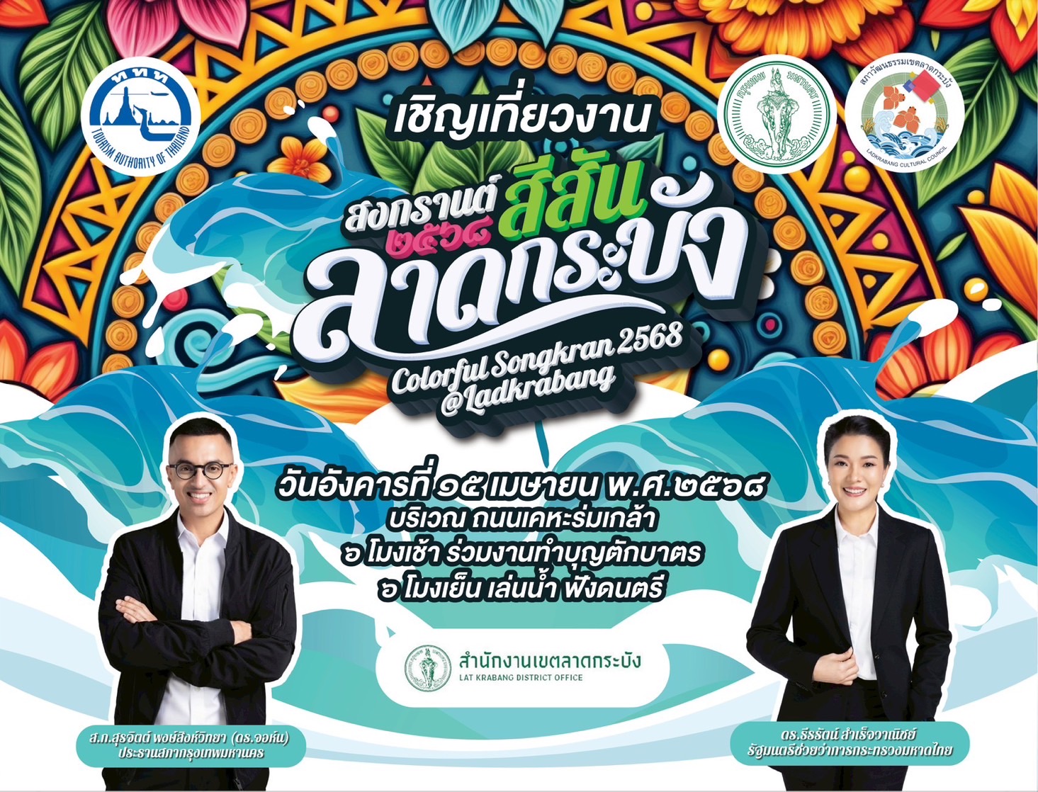 15 เม.ย.นี้ จัดใหญ่ “สงกรานต์ 2568 สีสันลาดกระบัง” เล่นน้ำ-ชมโชว์-ช้อปของดีท้องถิ่น“สงกรานต์ 2568 สีสันลาดกระบัง” ชวนสัมผัสเสน่ห์วัฒนธรรมมอญ จุดนัดพบใหม่ฝั่งตะวันออกกรุงเทพฯ 15 เม.ย.นี้ ที่เคหะร่มเกล้า