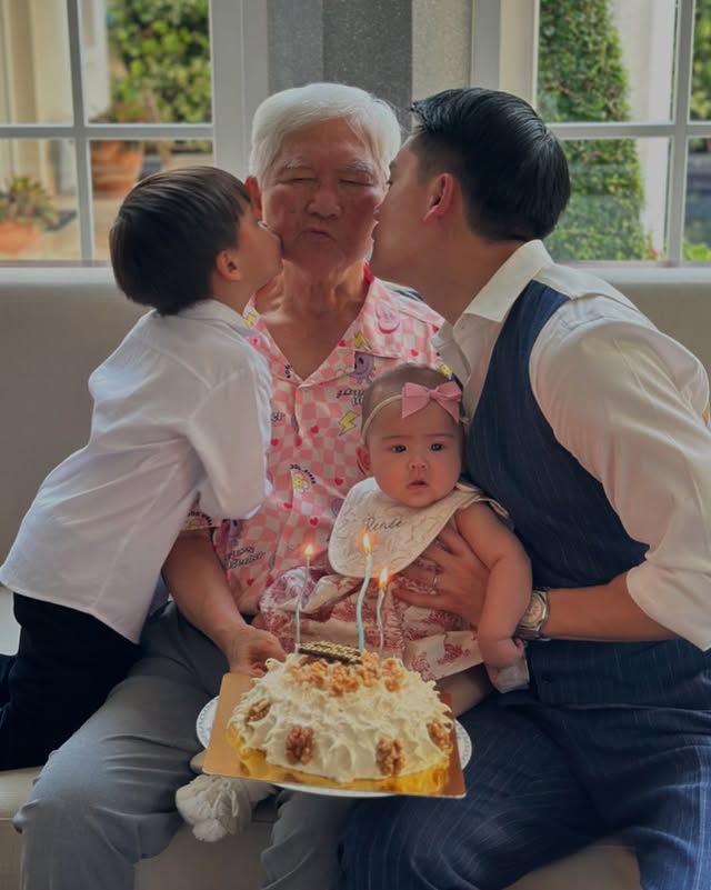 "Happy birthday kub daddy! We love you to the moon and back. ปีนี้มีหนูน้อยมาช่วยคุณปู่เป่าเค้กเพิ่มอีกหนึ่งคนนะครับ รักที่สุดครับผม"