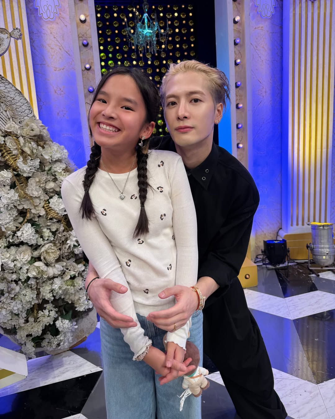 และช็อตเดียวทำเอา แม่แอฟ ถึงกับต้องแซวลูกสาวออกสื่อคือการได้กอดไอดอลที่รักของลูกสาว พร้อมกับแคปชั่นว่า "Life is great with @jacksonwang852g7" (ชีวิตมีความสุขที่สุดเมื่ออยู่กับ @jacksonwang852g7)