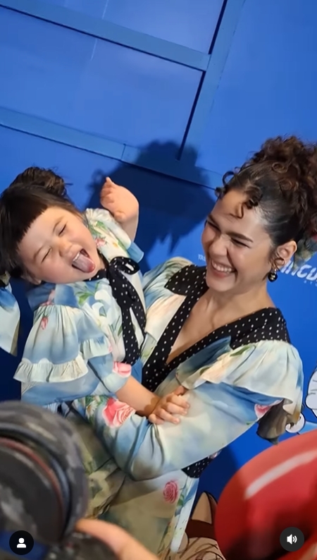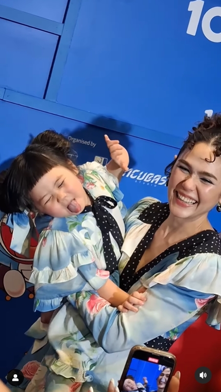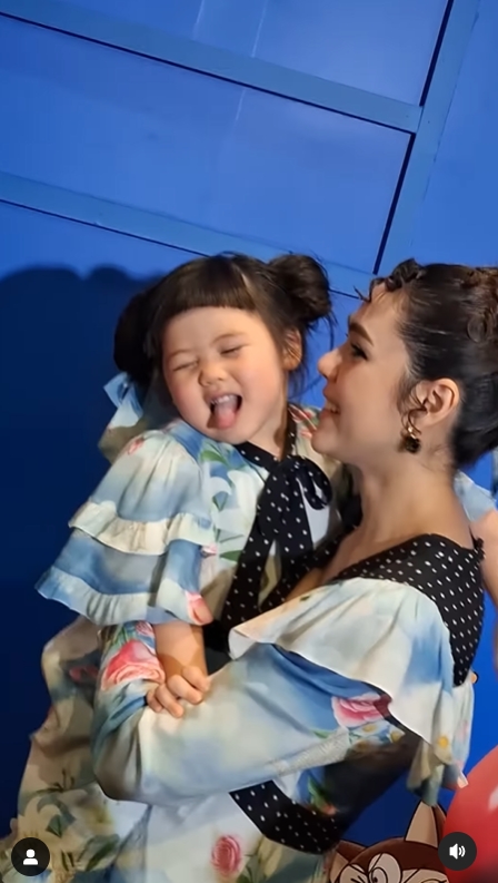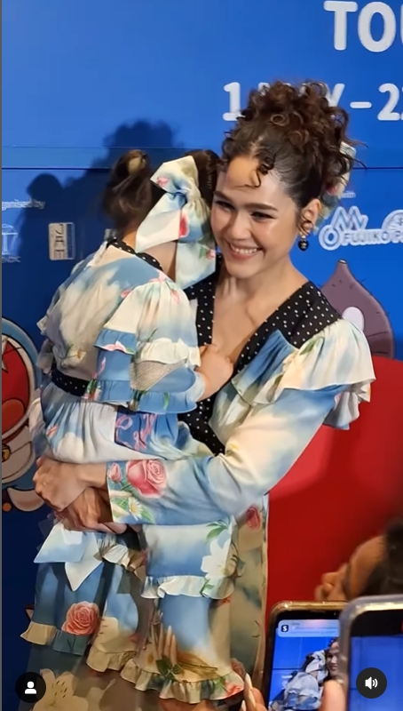 และช็อตนี้ที่ น้องเกล ทำท่าทางทะเล้นสดใสโชว์พี่ๆ สื่อ ก็ทำเอา แม่ชม ที่อุ้มลูกสาวอยู่นั้นอดจะหมั่นเขี้ยวไม่ไหวจริงๆ ถึงกับเอ่ยปากเบาๆว่า "กวนสุดๆ" แล้ว แม่ชม ก็ยิ้มด้วยความเอ็นดู พร้อมกับหอมแก้ม น้องเกล