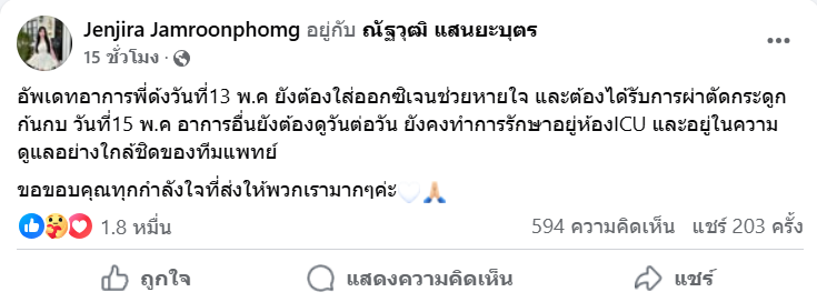 อัปเดตล่าสุด "จ่าลอด ไทบ้าน" เตรียมผ่าตัดเพิ่ม ยังอยู่ ICUภรรยาอัปเดตอาการล่าสุด "จ่าลอด ไทบ้าน" เตรียมผ่าตัดเพิ่ม ยังอยู่ ICU แฟนคลับส่งกำลังใจล้นหลาม