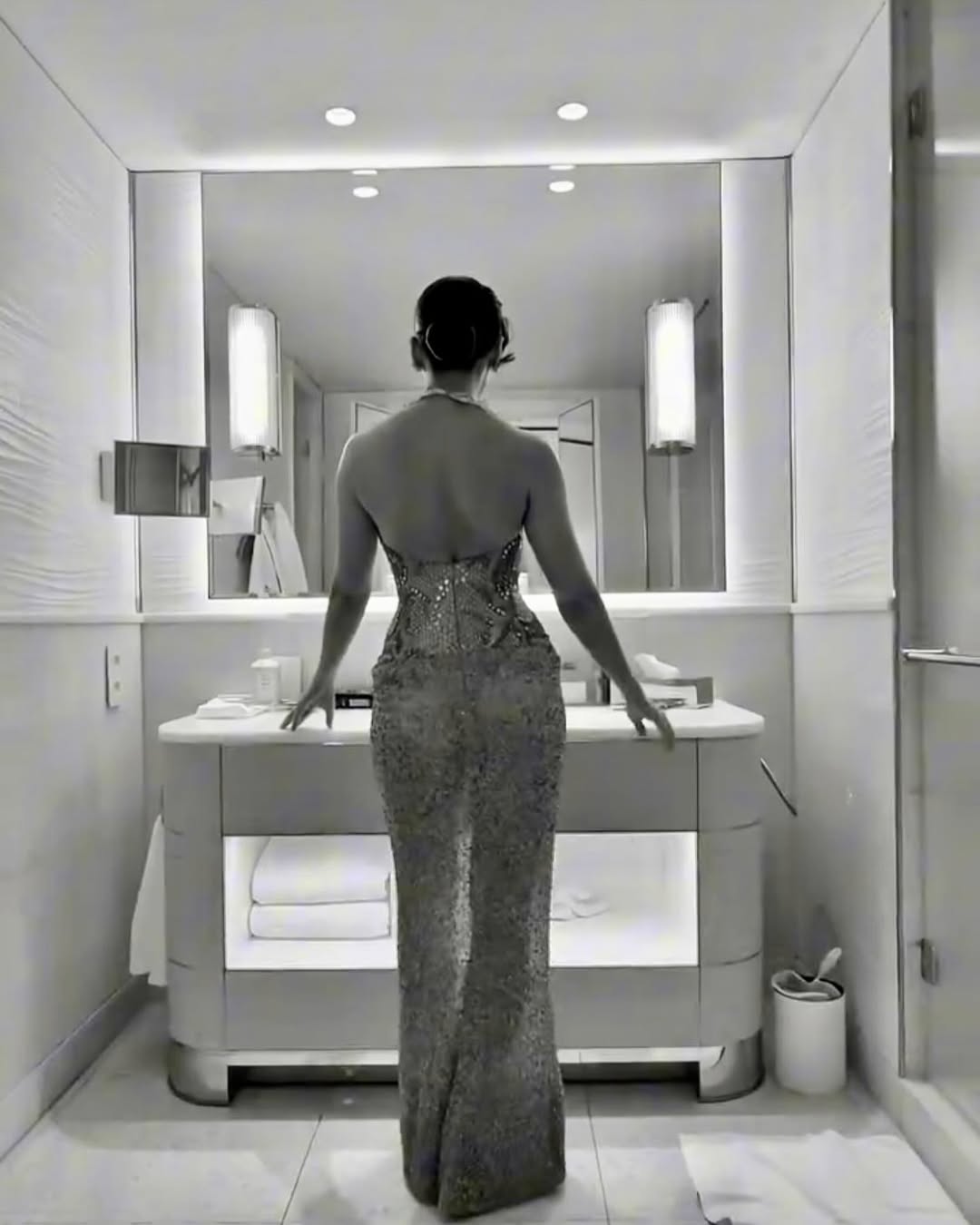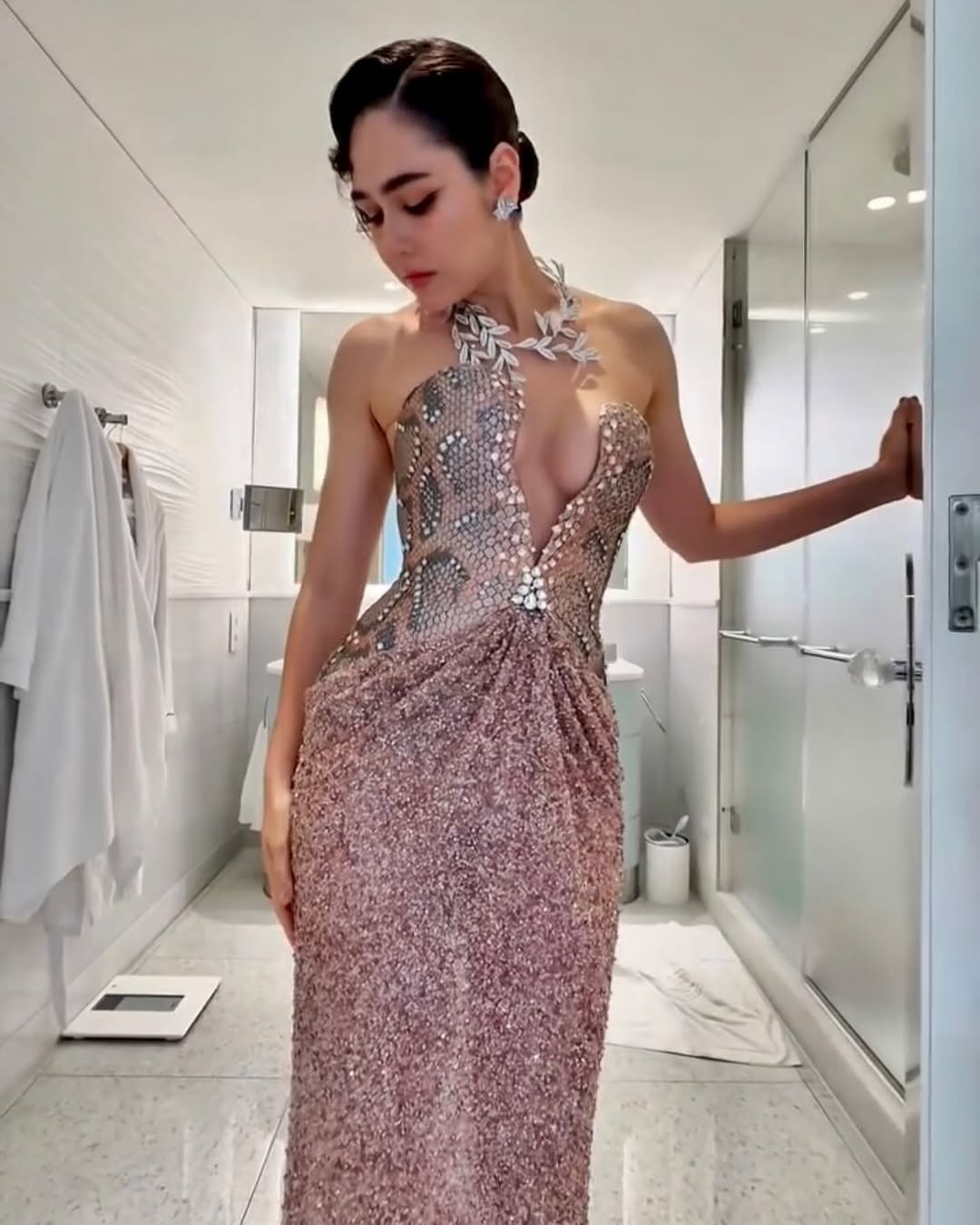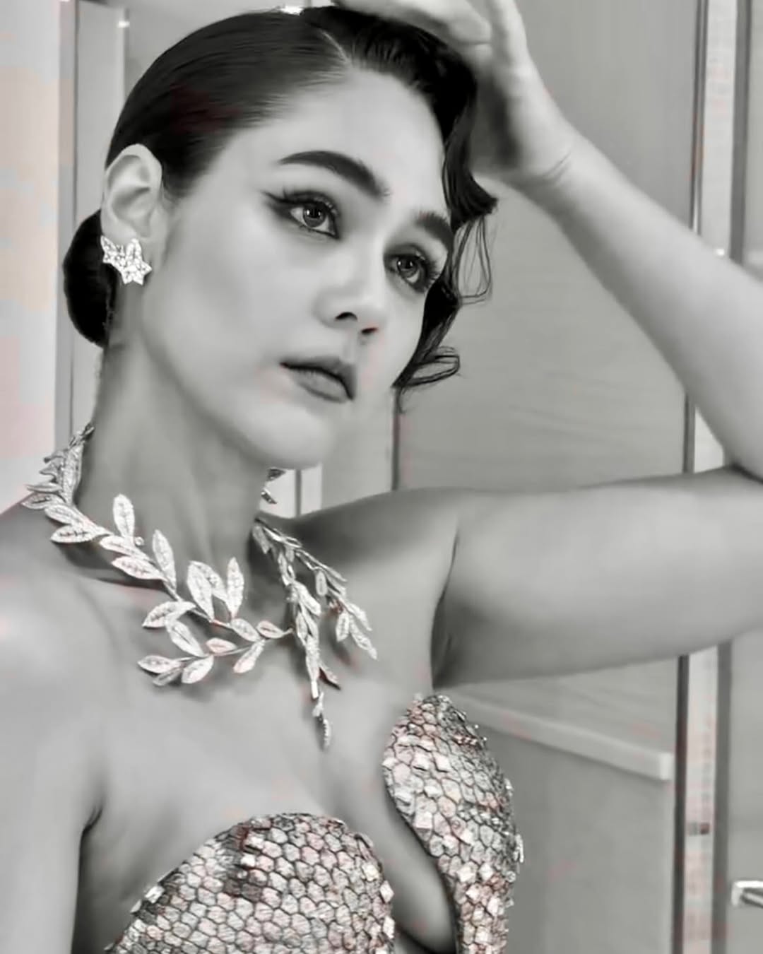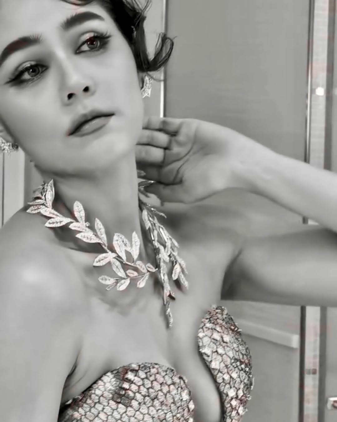 ซึ่งเธอมาในชุดเดรสหรูหราไฟลุกสุดๆ กับแบรนด์ Armani Privé S/S 2025 Haute Couture ดีไซน์สุดปังและเซ็กซี่มากกับงานแหวกอก ตัวชุดปักคริสตัลลายเกล็ดงู บอกเลยว่าเลอค่าและคู่ควรเหลือเกิน