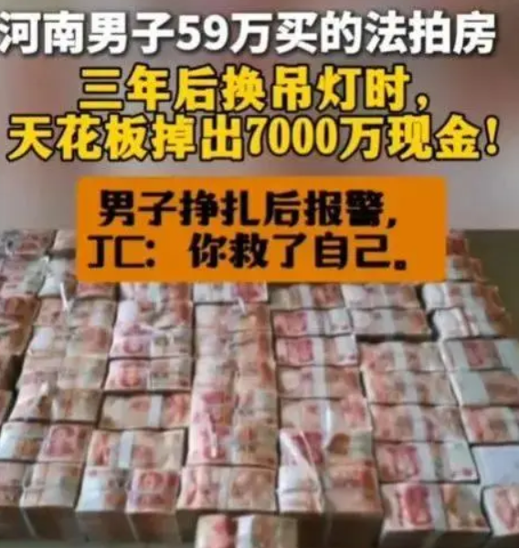หลังจากใช้ชีวิตในบ้านหลังนี้เป็นเวลา 3 ปี ในเดือนตุลาคม 2024 นายหลี่ได้เริ่มปรับปรุงบ้านใหม่ โดยระหว่างที่ช่างกำลังถอดโคมไฟเพดานออก ก็พบว่ามีสิ่งผิดปกติภายในฝ้า เมื่อเปิดดูจึงต้องตกตะลึง เพราะภายในซ่อนเงินสดเป็นฟ่อนๆ จนแทบล้นออกมา เมื่อนับจำนวนเงินทั้งหมดปรากฏว่ามีมากถึง 77 ล้านหยวน (ราว 396 ล้านบาท) ซึ่งถือเป็นเงินจำนวนมหาศาลที่คนทั่วไปอาจหาไม่ได้แม้ใช้เวลาทั้งชีวิต