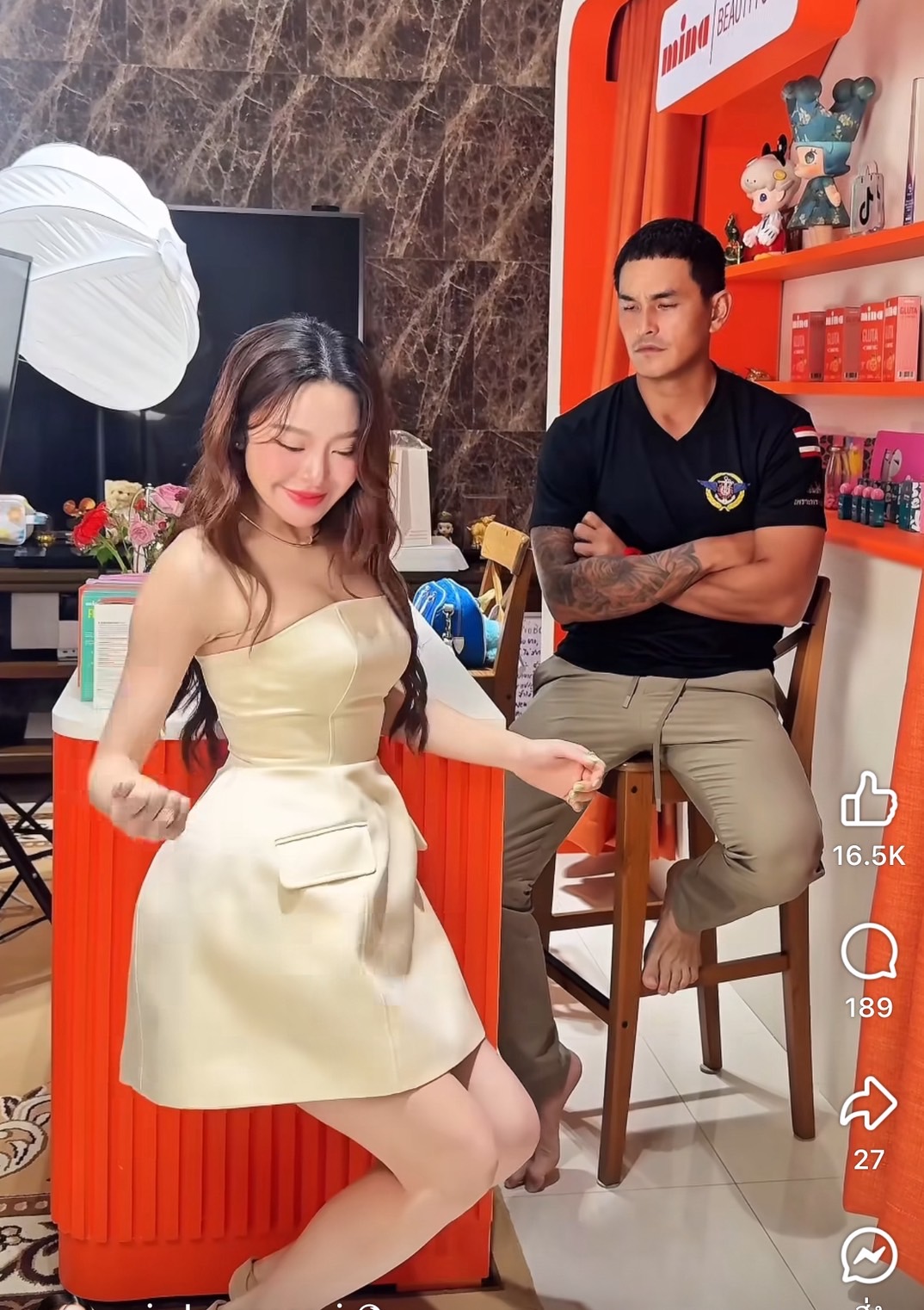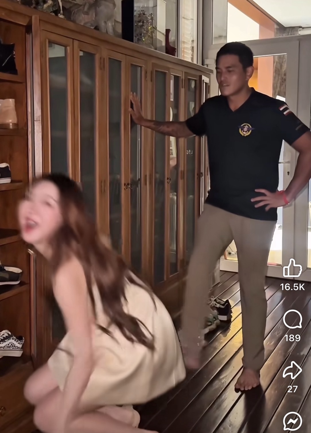 เช่นเดียวกับสาว "มายด์ ณภศศิ" ที่ไม่พลาดควงแฟนหนุ่ม "สงกรานต์" ออกมาทุบสะโพกเก็บของกับเขาบ้าง แต่ที่พีคสุดก็ตอนเก็บของสุดท้ายที่ฝ่ายชาย ใช้เท้าเตะฝ่ายหญิงจนกระเด็น