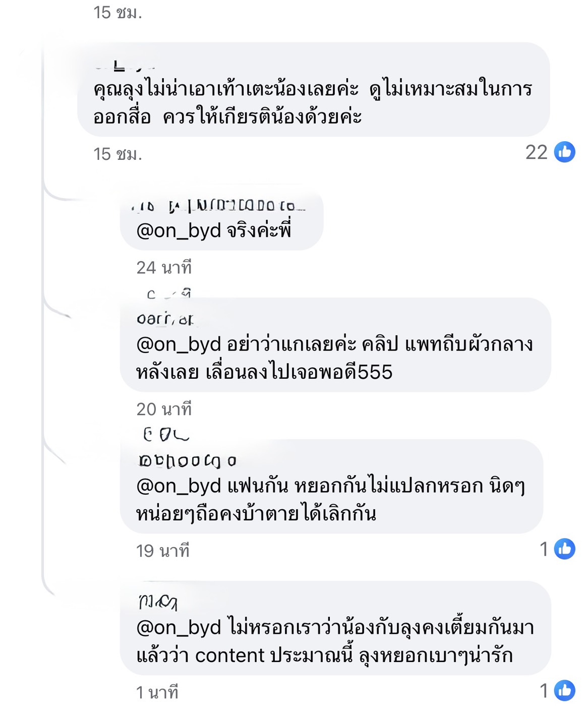 ท่ามกลางแฟนคลับเข้ามาชื่นชมความน่ารักของทั้งคู่ แต่ไม่วายก็มีดราม่า เพราะมีคนชอบก็ต้องมีคนไม่ชอบ โดยมีชาวเน็ตบางคนมองว่า ไม่ควร เอาเท้าเตะน้องเลยมันดูไม่เหมาะสมไม่ให้เกียรติ แต่ก็มีแฟนคลับเข้ามาปกป้องว่า แฟนกันหยอกกันไม่แปลก เชื่อว่าเค้าน่าจะจัดเตี๊ยมกันมาแล้วก่อนจะทำคอนเทนต์นี้