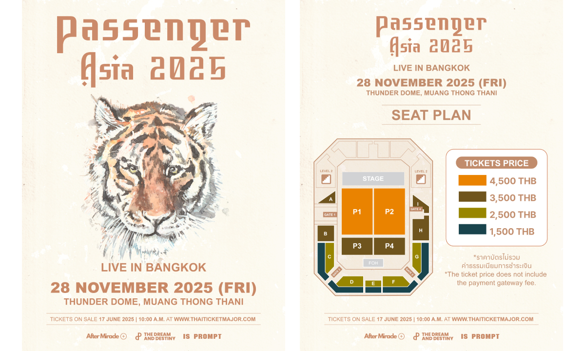 เตรียมตัวให้พร้อม !!!! ที่จะพบกับ ศิลปิน Passenger กับเพลงสุดฮิต Let Her Go ผู้ที่ชื่นชอบแนวเพลง Pop and Folk รู้จักเป็นอย่างดี และนี่เป็นครั้งแรกกับการเดินทางมาไทย ของ Michael David Rosenberg ใน Passenger Asia 2025 Live In Bangkok รอบการแสดง วันที่ 28 พฤศจิกายน 2568 ที่ ธันเดอร์โดม เมืองทองธานี ไม่ควรพลาดด้วยประการใดๆทั้งสิ้น ที่มาฟังเพลงโปรดของใครหลายๆคน แบบสดๆ ในบรรยากาศแสนอบอุ่น Let Her Go เ คยติดอันดับชาร์ตใน 16 ประเทศและมียอดชมมากกว่า 3.8 พันล้านครั้งบน ปี2014 เคยได้รับการเสนอชื่อเข้าชิงรางวัล Brit Award สาขาซิงเกิลแห่งปีของอังกฤษ และเขาได้รับรางวัล Ivor Novello Award สาขาผลงานที่มีการแสดงมากที่สุดจาก British Academy ซ้อมมือกดบัตรพร้อมกัน !!!! ในวัน อังคาร ที่ 17 มิถุนายน 2568 เวลา 10.00 น. ที่ WWW. thaiticketmajor. จัดโดย บริษัท เดอะ ดรีม แอนด์ เดสทินี จำกัด (The DND) และ บริษัท อีส พร้อม จำกัด ( Is Prompt )