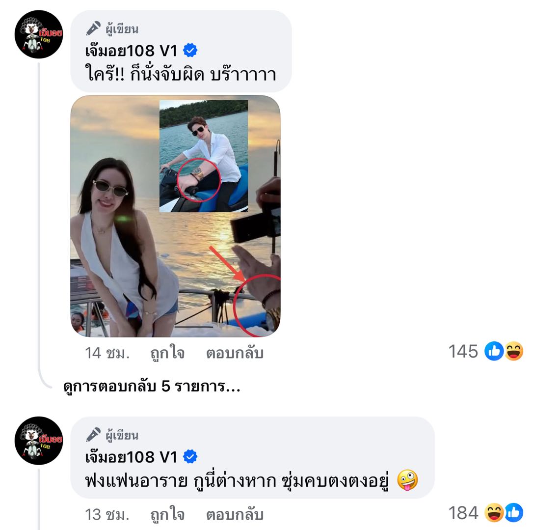 แต่รอบนี้โชคดีหน่อยที่ “เจ๊มอย” ได้เปิดหน้ามาให้ ทำให้ไม่ต้องทำการบ้านหนัก โดยเป็นภาพหนุ่ม “ตงตง” ที่อยู่ข้างสาวสวยนอกวงการ และออกมาหย่อนข้อความที่จุดชนวนให้ชาวเน็ตเอ๊ะถึงความสัมพันธ์ของทั้งคู่ โดยเขียนข้อความว่า “บร้าาาาาา เขาไปปาร์ตี้ด้วยกันตั้งหลายสิบคน พวกเมิงก็โฟกัสแค่ 2 คนไง๊! ผลัดกันถ่ายรูปก็ไม่แปลกหรอกม๊าง ผญ.ก็ปิดไอจีไพรเวท เพราะกลัวพวกเมิงเข้าใจผิด แค่นั้นเอ๊งงงง #อิพิมเมียตงตง ”