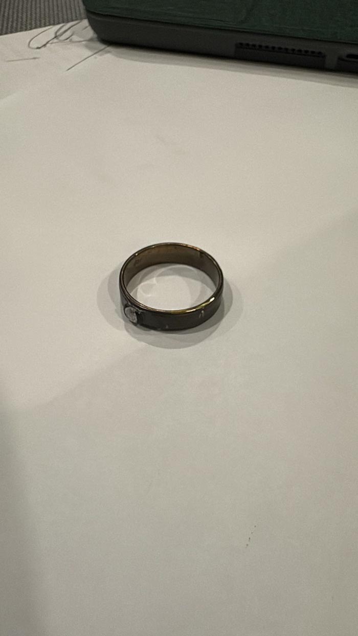 พร้อมเล่าว่า เมื่อวันที่ 17 มิถุนายน ไปทำธุระที่ห้าง แล้วนึกขึ้นได้ว่ามีแหวนเล็ก ๆ วงหนึ่ง ที่ทิ้งไว้ในรถ ไม่ได้ใช้แล้วเพราะใส่ตั้งแต่เด็กมานาน 20 กว่าปี จนคับนิ้ว เก็บไว้ก็คงไม่ได้ใช้อะไร และตอนนี้ภรรยาให้ใส่แหวนแต่งงานแทนแล้ว