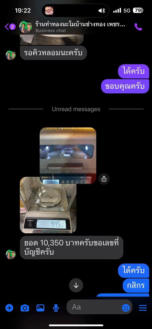ด้วยความไม่ไว้ใจร้านทองในห้างแล้ว เลยขอแหวนดำ ๆ คืนทันที และบอกแฟนว่า ส่งไปขายร้านทองในเพจดีกว่า เขาดูจริงใจกว่าเยอะเลย จึงกลับบ้าน หาที่อยู่เพจร้านชื่อดัง ซึ่งก็คือร้านของช่างนะโม แล้วส่งไปรษณีย์ไปเลยทันที โดยยังไม่ได้คุยกับร้านเลย ได้อ่านแค่ข้อความอัตโนมัติ