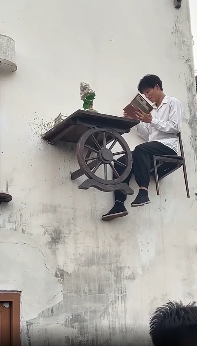 งานของเขาคือการนั่งนิ่งๆ สวมชุดโบราณ อ่านหนังสืออย่างสงบในฉากที่ถูกจัดไว้ให้เข้ากับบรรยากาศ เหมือนเป็น “โลโก้มีชีวิต” เพื่อดึงดูดนักท่องเที่ยวให้หยุดถ่ายภาพ คลิปวิดีโอดังกล่าวกลายเป็นไวรัลในจีน ทำให้หลายคนแห่สมัครงานประเภทนี้ พร้อมตั้งฉายาว่า “งานในฝัน ทำงานน้อย รายได้สูง”