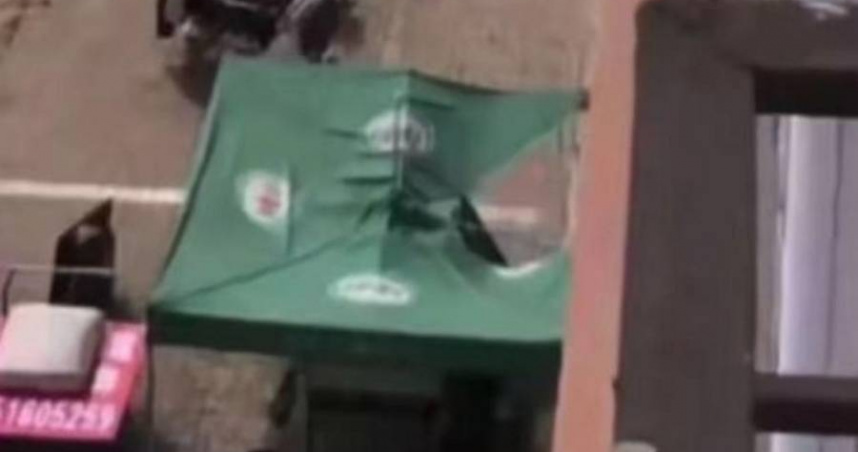 ตามรายงานจากสื่อจีน เหตุการณ์เกิดขึ้นเมื่อวันที่ 17 กรกฎาคมที่ผ่านมา ขณะที่คนเดินถนนพบเห็นเด็กชายตกจากที่สูง และร่างของเขาพลัดตกลงบนร่มเต็นท์กันแดดขนาดใหญ่ของร้านค้าอย่างแรงจนร่มทะลุ ก่อนร่างจะกระแทกพื้น คนใจดีรายหนึ่งรีบเข้าไปอุ้มเด็กขึ้นมา และรีบนำส่งโรงพยาบาล เบื้องต้นแพทย์ตรวจพบเพียงรอยถลอกที่หางตา ไม่มีอาการบาดเจ็บร้ายแรงอื่นใด