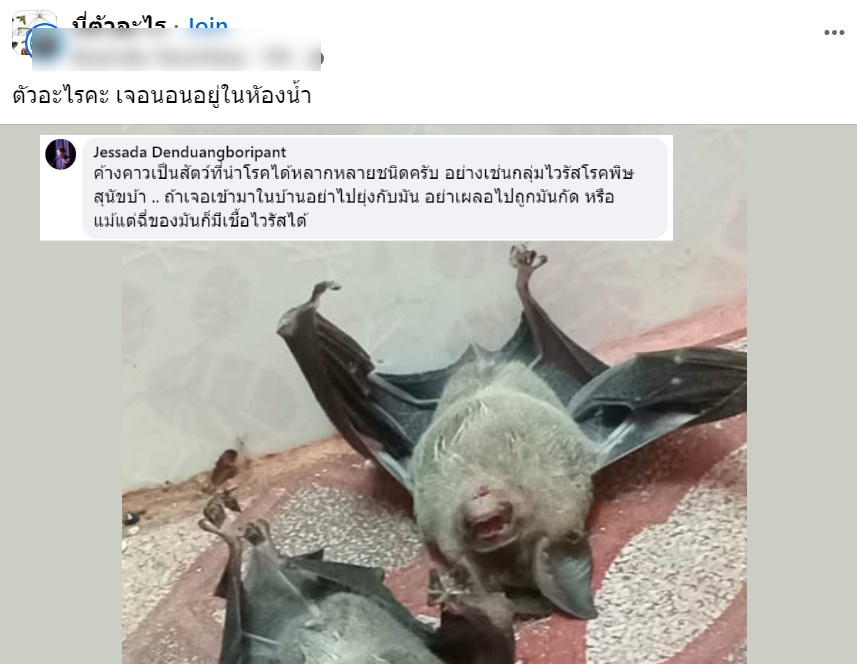 ภาพดังกล่าวสร้างความสงสัยและฮือฮาในกลุ่มทันที หลายคนคาดเดาว่าอาจเป็นนกหรือค้างคาว แต่สิ่งที่ทำให้โพสต์นี้กลายเป็นประเด็นร้อนยิ่งขึ้น คือการเข้ามาแสดงความเห็นของ รศ.ดร.เจษฎา เด่นดวงบริพันธ์ อาจารย์ประจำภาควิชาชีววิทยา คณะวิทยาศาสตร์ จุฬาลงกรณ์มหาวิทยาลัย ให้ข้อมูลเชิงวิชาการและเตือนภัยถึงอันตรายของสัตว์ที่ปรากฏในภาพ