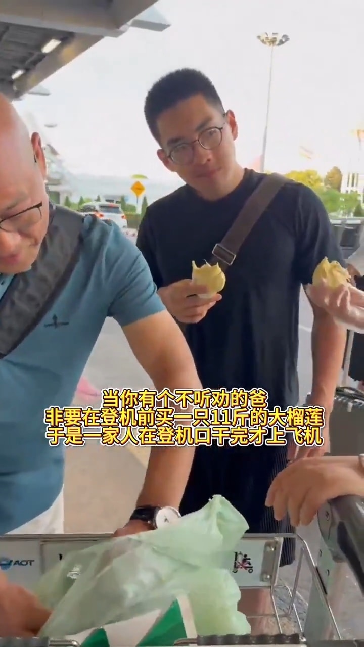 เข็ดจนตาย! ครอบครัวจีนยัดทุเรียน 5.5 กก. ใน 30 นาที ก่อนขึ้นเครื่องที่เชียงใหม่ (มีคลิป)ครอบครัวจีนซื้อทุเรียนในไทย แต่เอาขึ้นเครื่องไม่ได้ ยืนกินหน้าสนามบินเชียงใหม่ 5.5 กิโลกรัม หมดภายใน 30 นาที
