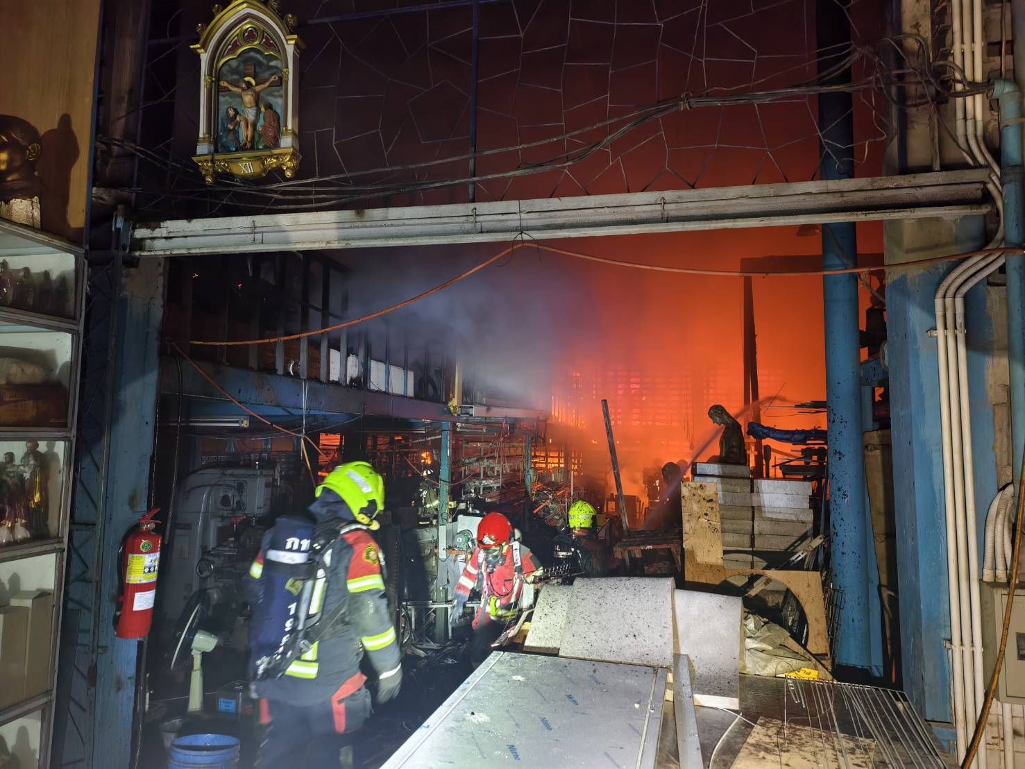 เปิดภาพ "รูปเคารพคริสต์" เสียหายแค่ไหน หลังเกิดเหตุเพลิงโหมระทึก รง.ซอยสุขุมวิท 105ระทึก เพลิงไหม้ในซอยสุขุมวิท 105 โรงงานผลิตรูปเคารพศาสนาคริสต์ วอด 100 ตารางวา
