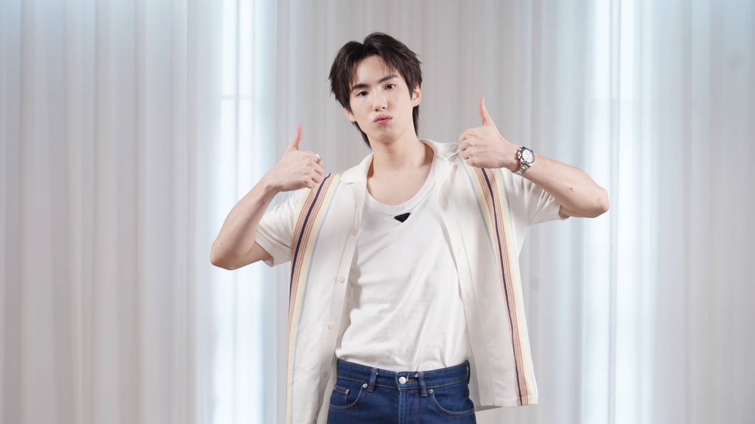 ภูธัชชัย : ตั้งแต่เข้าวงการนี้มาก็ทำให้เราเยอะมาก ผมรู้สึกว่าเขาคอยอยู่ข้างหลังเราตลอดคอยซัพพอร์ตเราในทุก ๆ เรื่องเลยไม่ว่าเราจะทำอะไรผมรู้สึกว่าเค้าให้กำลังใจเราตลอด ล่าสุดมีอันที่ตราตรึงใจผมมากยังอยู่ในใจผมอยู่เลย ที่เขาทำให้แต่ล่าสุดผมไป fasion week มาแล้วมันต้องช่วยกันปั่นเทรนด์เพื่อที่จะได้ยอดแบบ EMV (Earn Media Value) แบบสูงๆ เป็นอะไรที่ยากมาก ๆ ต้องเหนื่อยมาก ๆ เขาช่วยกันปั่นเทรนด์ให้ทั้งคืน อดหลับอดนอนปั่นเทรนด์ให้ แล้วก็ติดแท็ก รู้สึกว่าคนหนึ่งแบบอดหลับอดนอนช่วยเรา คือขอบคุณมากๆแล้วก็ประทับใจมากๆ