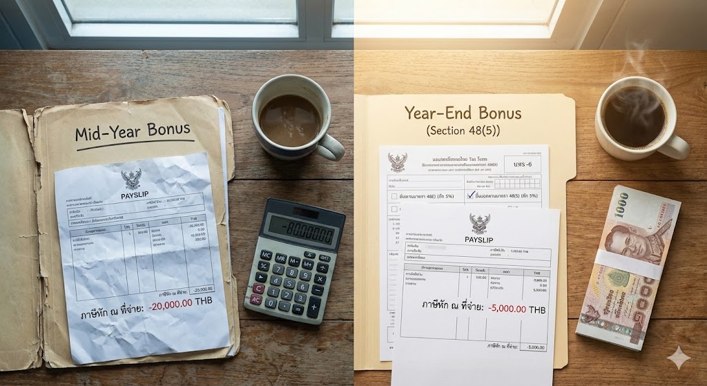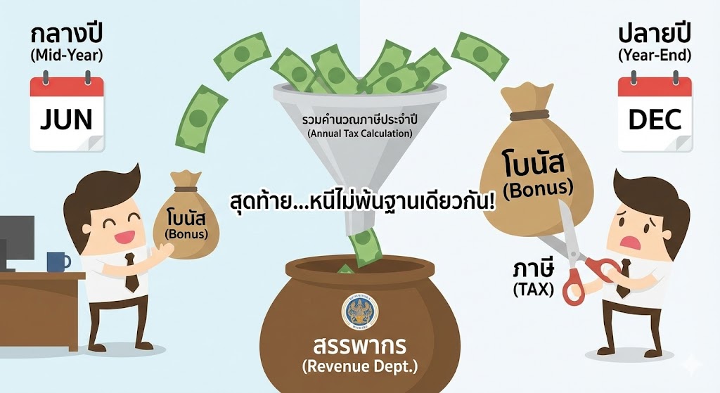 เช็กข่าวชัวร์ : โบนัสกลางปี vs โบนัสปลายปี หักภาษีต่างกัน? เงินหายไปหลักหมื่น?!โบนัสปลายปี 2568 หักภาษีแค่ 0-5% จริงหรือ? วิธีขอแบบไม่ให้โดนหักหนัก