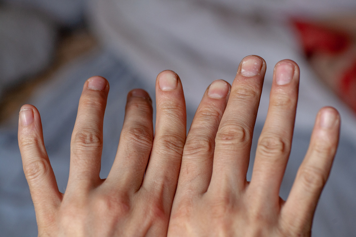 Raynaud’s Phenomenon: ปลายมือเท้าซีด → ม่วงคล้ำ → แดง เมื่อเจอความเย็นหรือเครียด เนื่องจากหลอดเลือดหดตัวรุนแรง