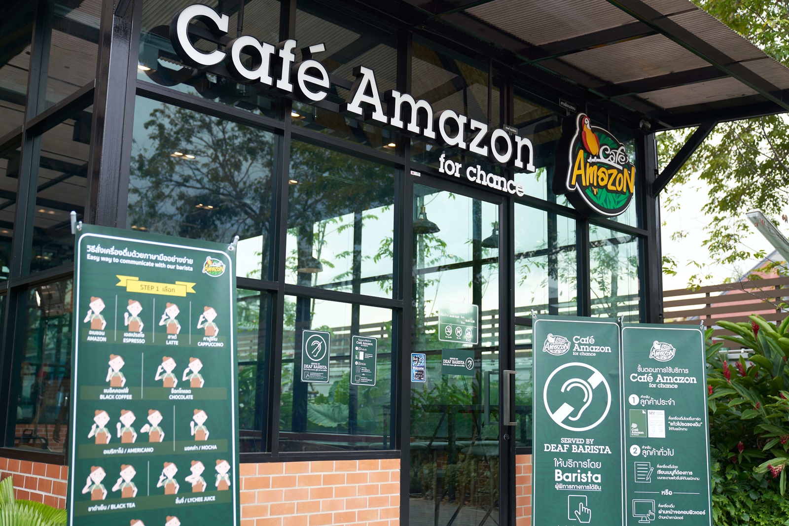 และร้าน Café Amazon for Chance แห่งแรกที่ดำเนินการโดยผู้พิการด้านการได้ยินเริ่มในปี 2561 ช่วยพัฒนาทักษะ ความสามารถ สร้างอาชีพ สร้างรายได้ให้แก่ผู้พิการทางการได้ยินที่จบการศึกษาจากวิทยาลัยราชสุดา มหาวิทยาลัยมหิดล