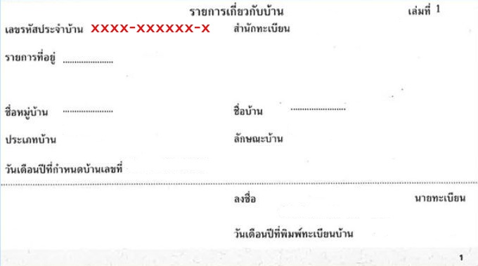 ความหมาย: คือเลขรหัส 11 หลัก (รูปแบบ 0000-000000-0) เป็นรหัสที่กำหนดให้แก่บ้านแต่ละหลัง เพื่อแสดงถึงการถือครองที่อยู่อาศัยอย่างถูกต้องตามกฎหมาย