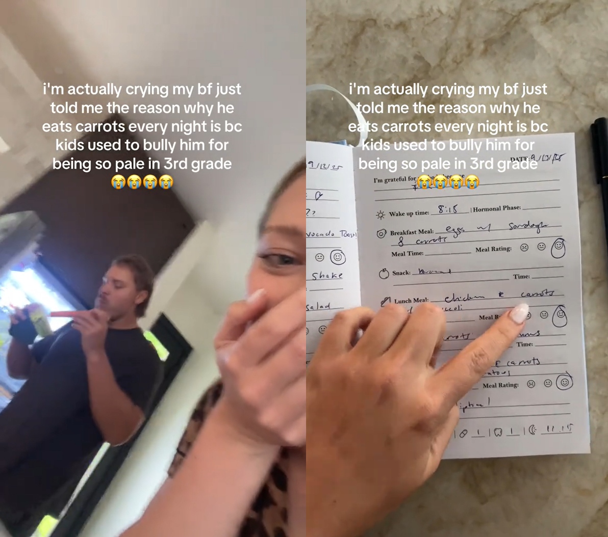 เรื่องราวนี้กลายเป็นไวรัลบน TikTok ที่มีผู้เข้าชมมากกว่า 9.6 ล้านครั้ง เมื่อฝ่ายหญิงสังเกตเห็นว่าในหนึ่งวัน แฟนหนุ่มของเธอรับประทานแครอทในทุกมื้ออาหาร ตั้งแต่เช้าจดเย็น ไม่ว่าจะเป็นอาหารหลักหรือของว่าง ซึ่งมันดูมากกว่าที่คนปกติทั่วไปจะรับประทานกัน