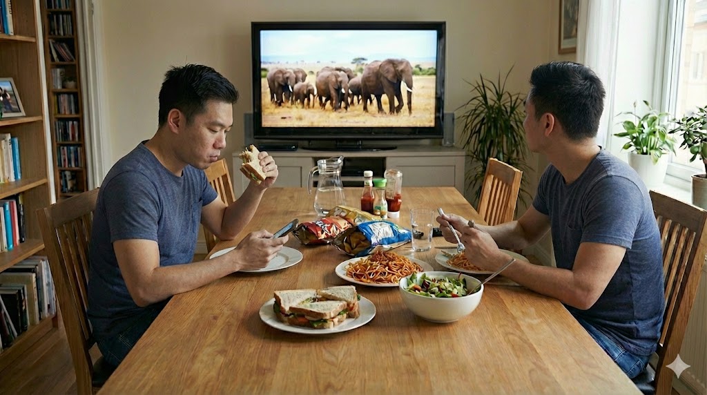 วิจัยเฉลยแล้ว! ตอนกินข้าว "ดูทีวี vs ไถมือถือ" ทำอะไรอ้วนกว่า? น้ำหนักพุ่งพรวดน่าตกใจ!!คำถามโลกแตก! สายติดจอต้องรู้ "ทีวี vs สมาร์ทโฟน" อันไหนคือตัวการทำลายหุ่นที่แท้จริง?