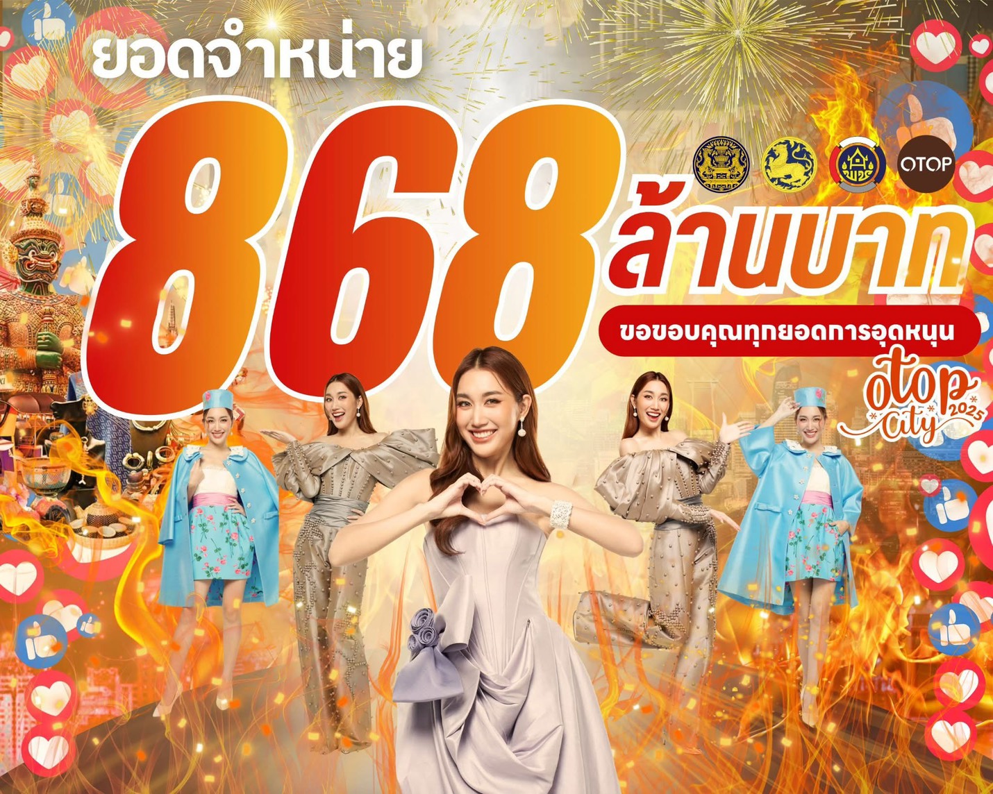 "นายกอนุทิน" ปลื้ม OTOP city ยอดขายสูงเป็นประวัติการณ์ กว่า 868 ล้านบาทปิดฉากลงอย่างยิ่งใหญ่และน่าประทับใจ ยอดขายทะลุ 868 ล้านบาท เพิ่มขึ้นกว่า 20% จากปีที่ผ่านมา ตอกย้ำพลังชุมชนไทย และความสำเร็จของเศรษฐกิจฐานรากสำหรับงาน OTOP CITY 2025