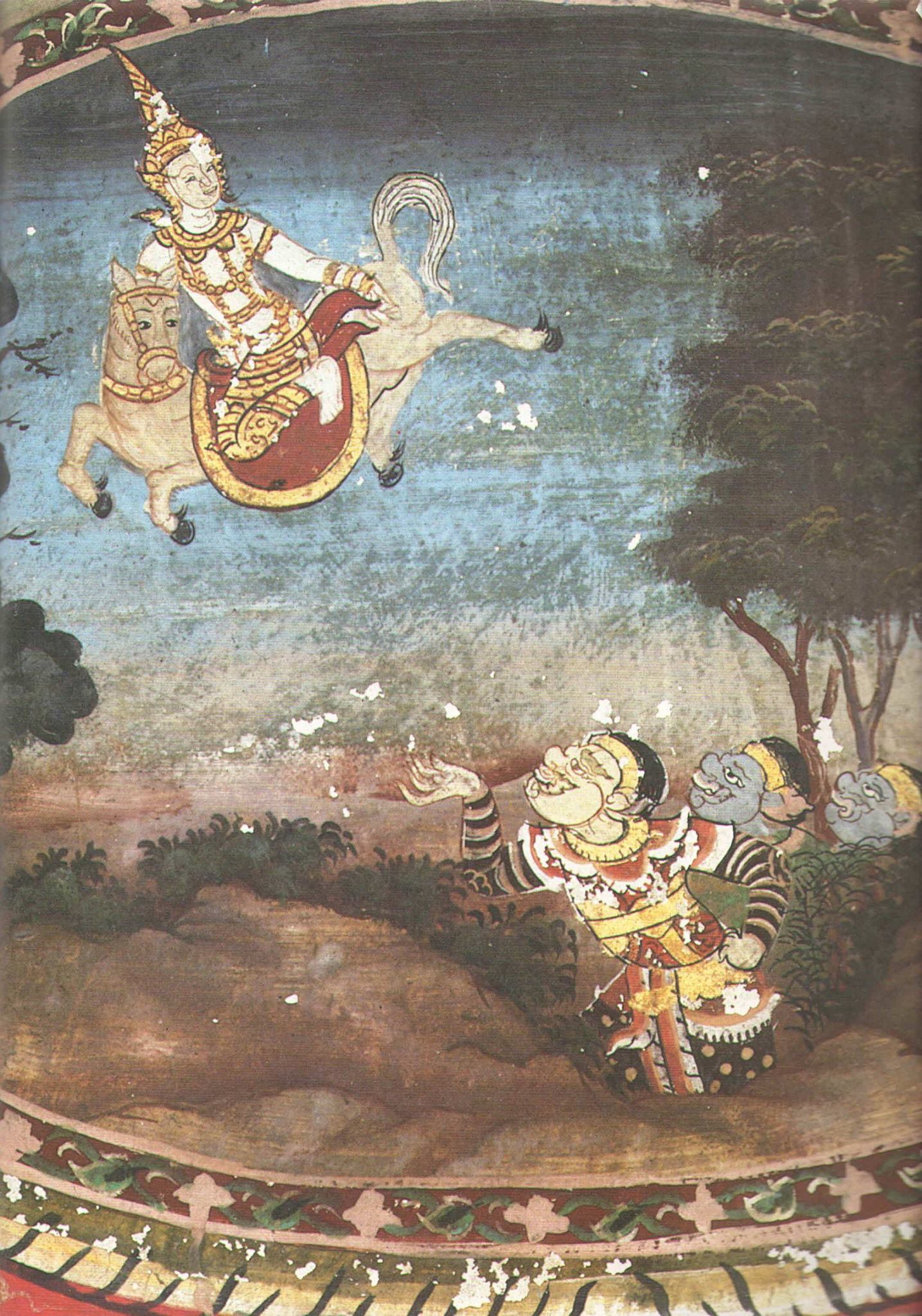 ขับนิทานนางสิบสอง-ขานทำนองพระรถเมรีภาพจิตรกรรมฝาผนังเรื่องพระรถเมรี ที่บานแผละพระอุโบสถวัดสุทัศนเทพวรารามราชวรมหาวิหาร