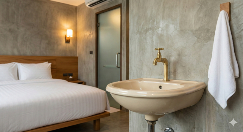 เคยไหมครับ? เวลาไปพักโรงแรมหรือรีสอร์ตบางแห่ง เปิดประตูเข้าไปแล้วต้องงงตาแตก เพราะเจอ "อ่างล้างหน้า" ตั้งเด่นหราอยู่ข้างนอกห้องน้ำ หรือบางทีก็อยู่ปลายเตียงซะอย่างนั้น หลายคนบ่นว่าใช้งานลำบาก ล้างหน้าทีน้ำกระเด็นเปียกพื้นห้องนอนไปหมด