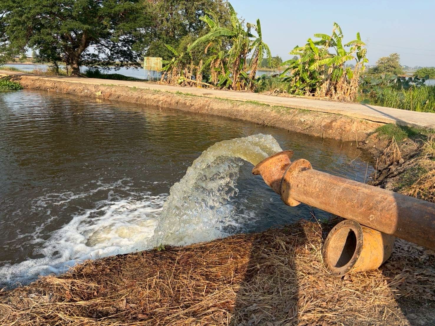โดยเร่งระดมบุคลากร เครื่องจักร และสรรพกำลัง ลงพื้นที่กำจัดผักตบชวาและสิ่งกีดขวางทางน้ำ ควบคู่กับการบูรณาการความร่วมมือกับเกษตรกรในพื้นที่ ดำเนินการตัดหญ้าและวัชพืชบริเวณคันคลองส่งน้ำ เพื่อเพิ่มพื้นที่รับน้ำและเสริมประสิทธิภาพการระบายน้ำและการส่งน้ำให้เพียงพอต่อความต้องการ ทั้งด้านการอุปโภคบริโภคและภาคการเกษตร พร้อมทั้งติดตั้งเครื่องสูบน้ำในพื้นที่น้ำท่วมขัง เพื่อเร่งระบายน้ำออกจากพื้นที่การเกษตร ช่วยให้เกษตรกรสามารถกลับเข้าทำการเพาะปลูกได้ตามปกติ และสนับสนุนการส่งน้ำให้เกษตรกรอย่างทั่วถึงต่อไป อาทิ