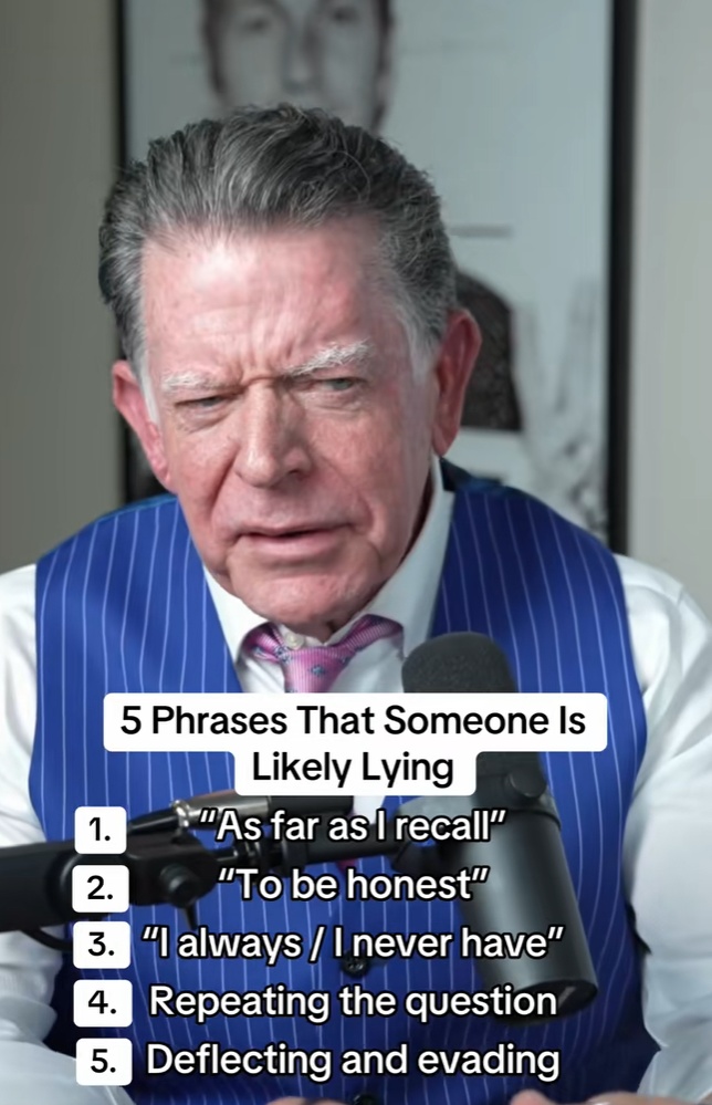 เคยสงสัยไหมว่าคนที่คุยด้วยกำลังพูดความจริงหรือโกหกอยู่? เรื่องนี้คงไม่มีใครเชี่ยวชาญไปกว่า "ทนายความ" ที่ต้องว่าความคดีอาญามานานกว่า 40 ปี อย่าง แดน ค็อกเดลล์ (Dan Cogdell) ล่าสุดเขาได้ออกมาเปิดเผยเทคนิคจับผิดคำโกหกผ่าน TikTok โดยระบุว่าคนทั่วไปมักโกหกเฉลี่ยวันละ 2-3 ครั้ง และนี่คือ 5 วลีเด็ดที่คนโกหกมักหลุดปากออกมาให้เราจับไต๋ได้