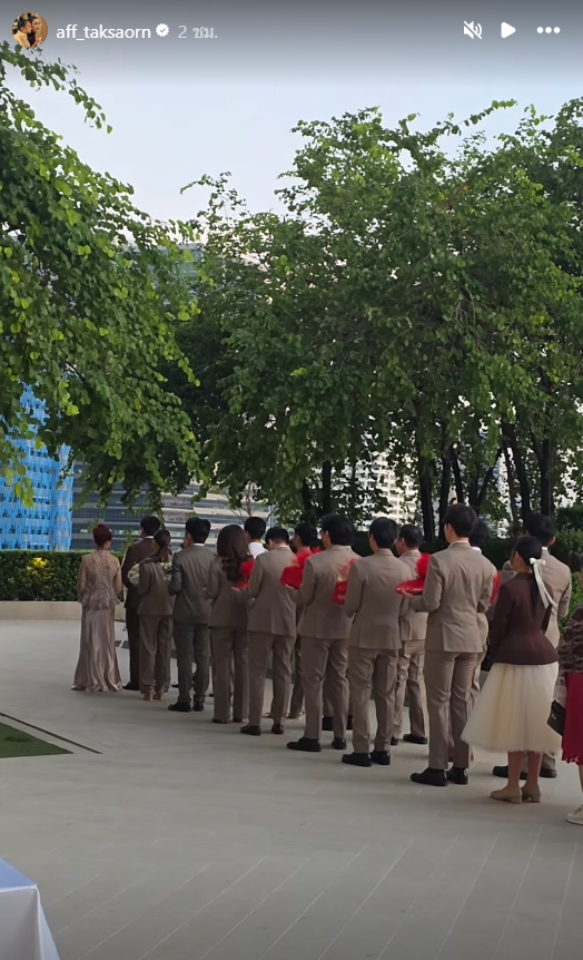 งานนี้ แอฟ ทักษอร ก็ไม่พลาดที่จะมาร่วมเป็นสักขีพยานและเก็บภาพโมเมนต์แห่งความประทับใจมาฝากแฟนๆ ผ่านโซเชียลมีเดีย ซึ่งหลังจากได้เห็นภาพบรรยากาศงานแต่งที่แสนโรแมนติกแล้ว แฟนคลับหลายคนต่างอดไม่ได้ที่จะคอมเมนต์แซว อยากเห็นภาพข่าวดีของคู่ แอฟ-นนกุล เป็นคู่ต่อไปเร็วๆ นี้บ้าง